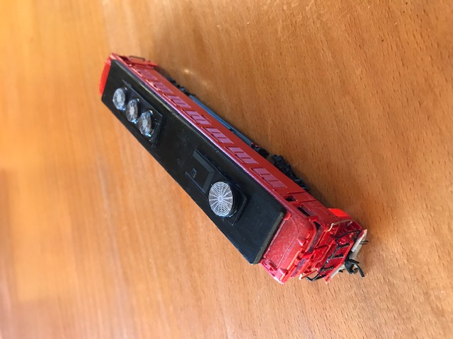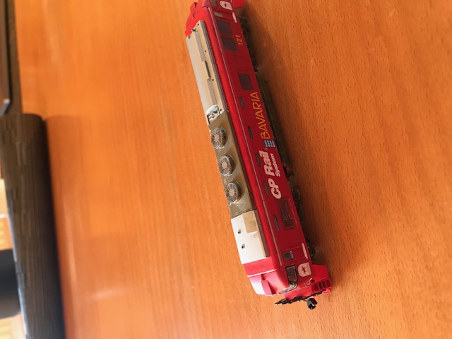 bei Bild 1 ...ist sie "fertig", da das mittl. Drehgestell fehlte, wurde ein Tank eingebaut für "weite Distanzen", das lightboard habe ich aus einer US-Lok passend gemacht........nun kann sie wieder "lange" Strecken fahren.