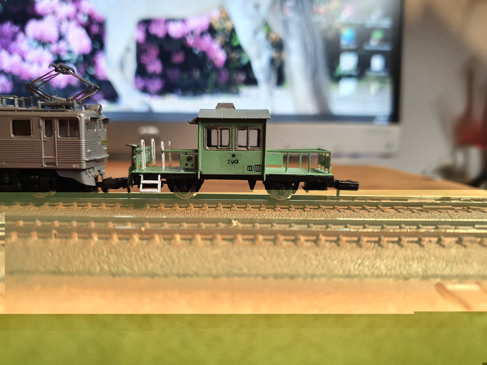 Als erstes habe ich aus einen Tomytec Güterwagenmodell das Chassis zerbastelt und unter meinen YO201 untergebracht. Gleich mal an eine Lok gehangen ob die Höhe passt: jep, hat gepasst.