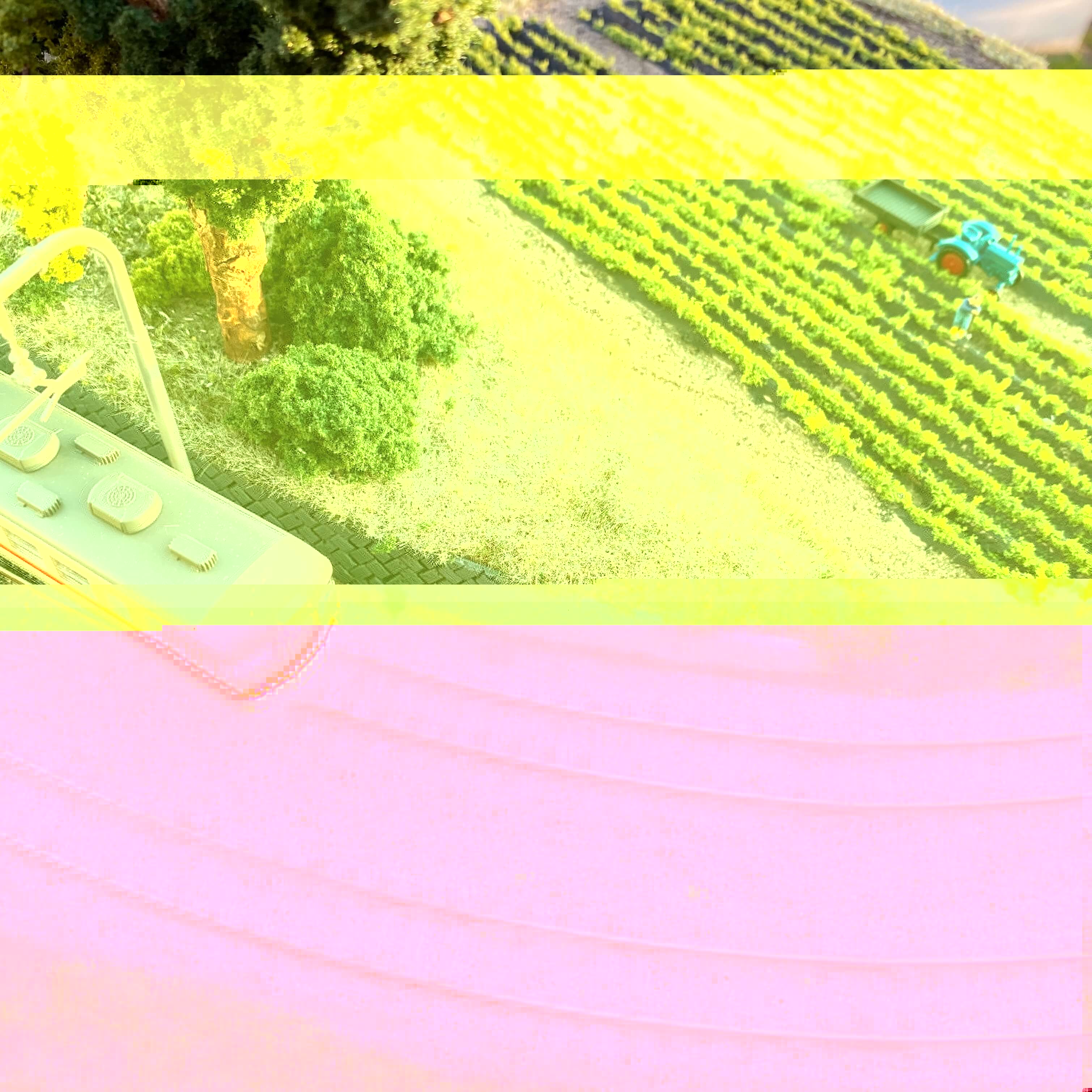ein prächtiger Sommerabend außerhalb der Stadt zeigt sich auf meinem nächsten T-Trak-Kurvenmodul. Der 167er ist auf dem Weg ins städtische Depot während der Bauer mit kritischem Blick sein Feld prüft.