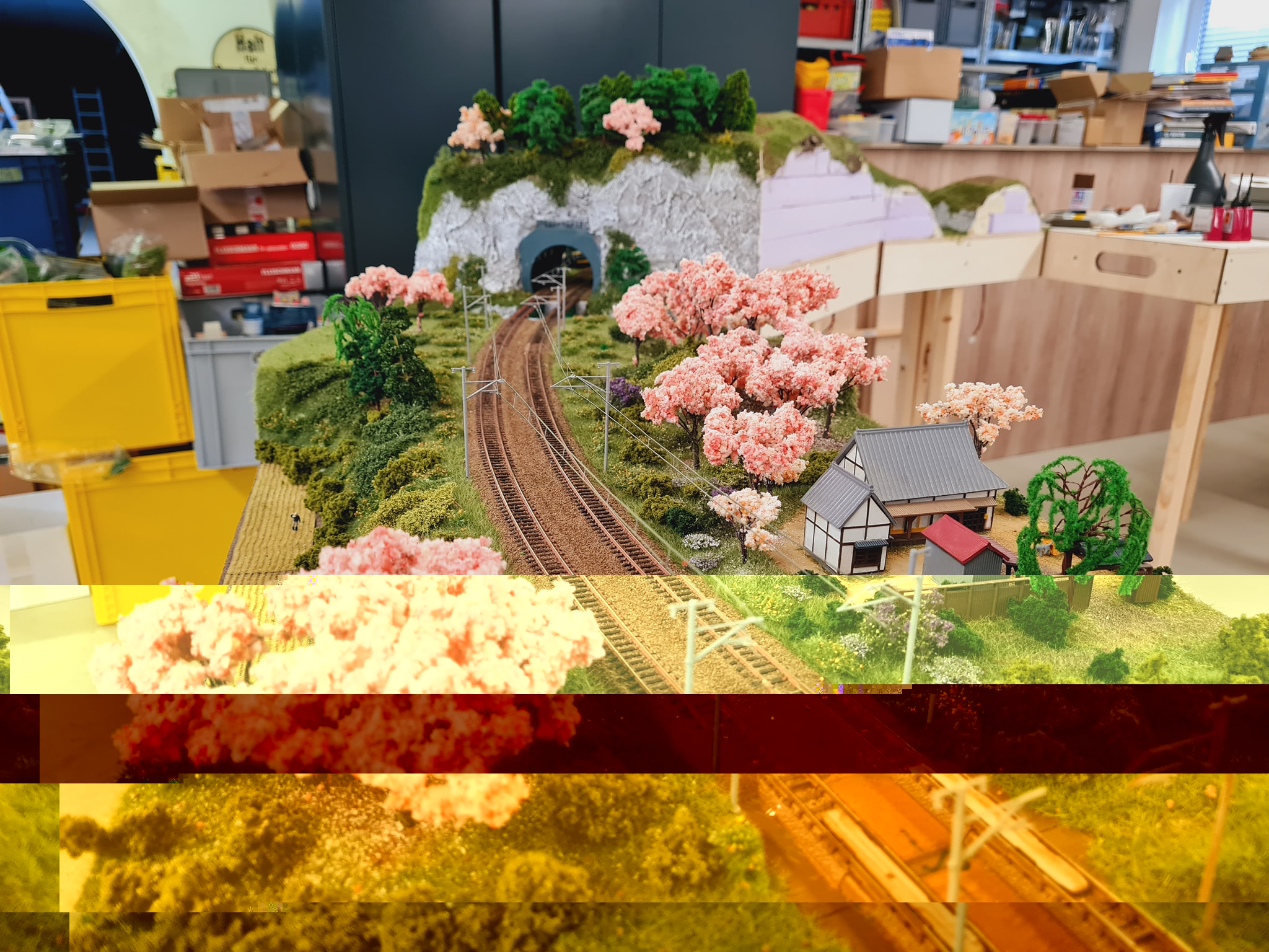 Die Tunnelportale werden übrigens noch farblich behandelt, die sind nur Grundiert und wegen dem Colorieren der Felsen noch nicht endgültig lackiert gewesen