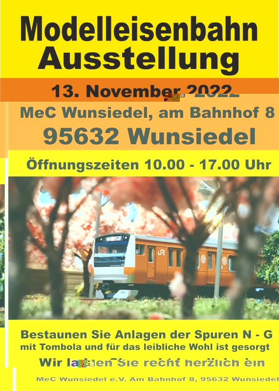 für ganz kurzentschlossene: am 13. November 2022 (morgen) haben wir wieder in unseren Vereinsräumen eine Modellbahnaustellung unter anderem habe ich meine Japan Module aufgebaut und Ulli ist auch da