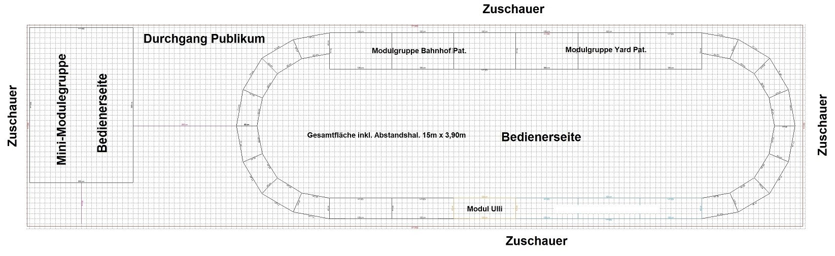 Wir treten mit einem größeren Modularragement der zweigleisigen Module und der Minimodule auf einer Fläche von 15mx4m auf.