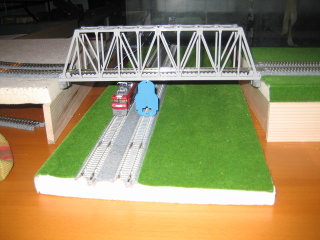 1 Die Schienen enden Stumpf am Modulrand. Teilweise hatte es ziemlich grosse Lücken in den Schienen an den Modulübergängen. Ich hatte auch mehrmals gesehen wie ein Wagen entgleist ist oder der Zug entkuppelt hat. Die Züge waren aber auch sehr lang was die Gefahr eines Entkuppelns erhöht.Zudem war das selbe auch auf einer HO Modulanlage passiert. Einigige Modellbauer haben die Schienenenden auf eine Platine gelötet um so die Gleislage mittels Schraube justieren zu können. Dies sieht aber nicht gut aus auch tarnen wird schwierig weill man ja irgendwie an die Stellschraube kommen muss.