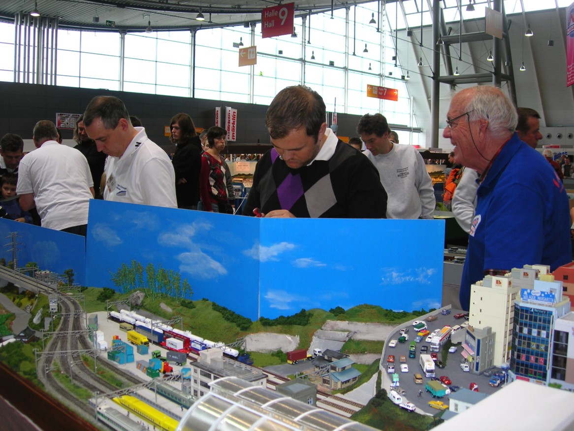 Wie Kai schon geschrieben hat, war es eine anstrengende Veranstaltung. Aber es war total super! Eine tolle Kamaradschaft mit den anderen Vereinen und Organisationen aus Finnland, Dänemark, Niederlande, Frankreich, Spanien, Italien, Schweiz, Österreich, Canada und Deutschland (GermaNTrack, Dreiländerdreieck, München, Stuttgart, IG NippoN). Ich hoffe, ich habe nichts vergessen. Sie haben zum Teil gigantische Modulanlagen in hervorragender Qualität gezeigt. Es war auch keine Konkurrenz zu spüren, sondern nur ein freundschaftliches Miteinander.