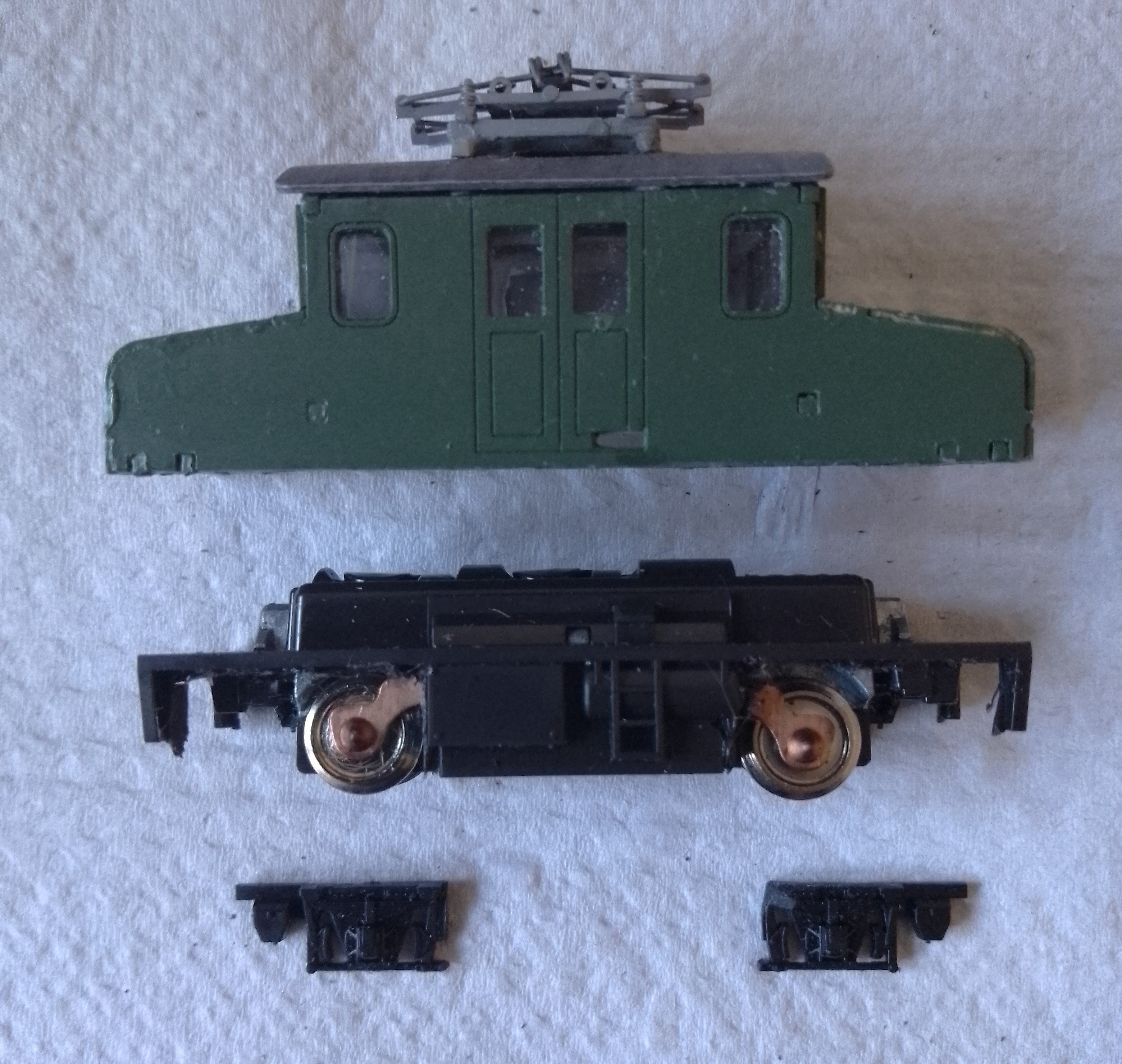 Tragfedern bekommen. Diese Laufwerksteile wurden einem Tomix-Fahrgestell entnommen und ans Kato-Fahrwerk