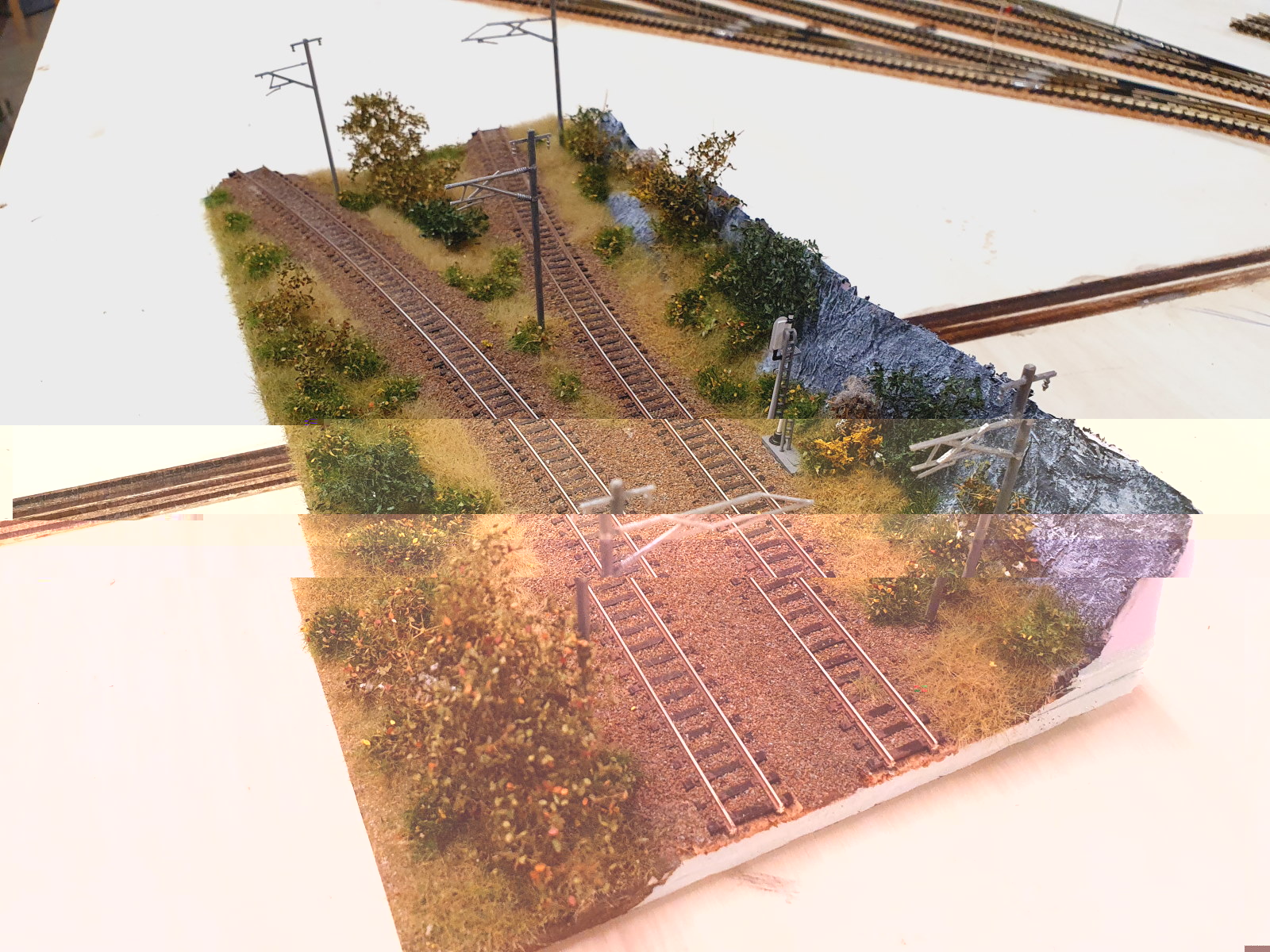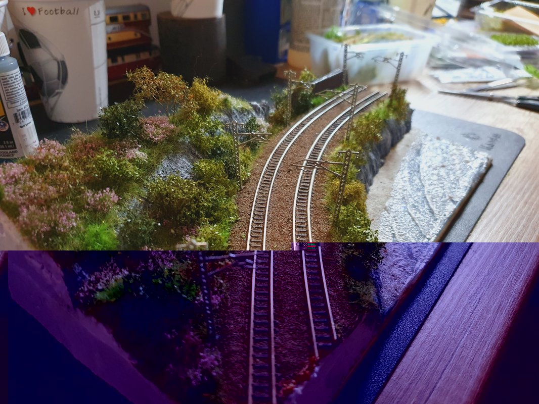 Ansich ganz gut, mir gefällt die Betonwand da hinten, klasse gemacht. BVeim Schotter sieht man das der halt zu grob ist, ich empfehle da immer den N Schotter von https://www.koemo.de/, Den Nutze ich in allen Spurweiten seit Jahren (vor allem wenn man den so mischt wie in Abbildung 2 - WOW). Kleiner Tip, die Profile vorm Schottern noch "rosten" :)