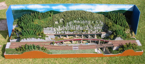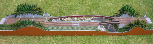 In Japan gibt es viele Module mit den Abmessungen 300mm x 600mm,300mm x 900mm, 300mm x 1200mm etc . Die Modulkästen kann man schon fertig kaufen und sind ein de facto Standart. Dieses System lässt eine grosse Vielfalt von verschiedenen Modulen zu, die Abmessungen müssen einfach ein vielfaches von 300mm betragen. Dank der Geometrie ist jede Modulzusammenstellung möglich Kreis, Hundeknochen und natürlich Linear. Um auf die Modullänge zu kommen braucht man bei Tomix und Kato Weichenausgleichstücke und dergleichen. Die Gleise sind symmetrisch zur Mitte angebracht und je nach Gleissystem hat es einfach ein anderer Gleisabstand. Mit Übergangsmodulen kann man vom einen zum anderen Gleissystem wechseln. Das Rastermass ist unabhängig vom Gleissystem und es können theoretisch beliebig viel Gleissysteme angewandt werden.