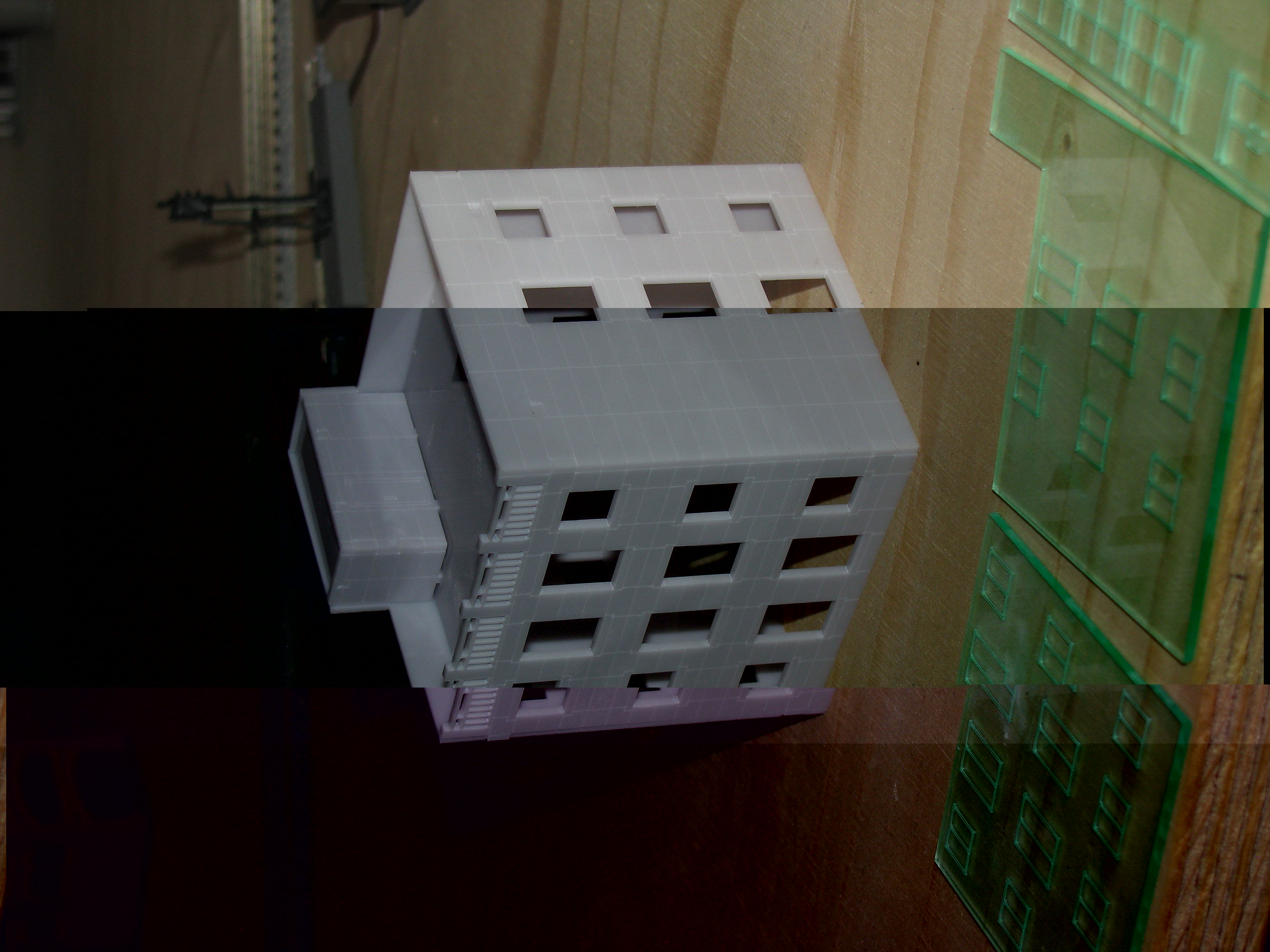 Ich habe vier Häuser und das Bahnhofsgebäude doppelt gekauft. Die Häuser sind fertig zusammengebaut. Die Teile sind, wie Kai beschrieben hat, passgenau. Der Kunststoff ist minderwertig und extrem bruchgefährdet. Ich habe in meinem über 40 Jahre währenden Modellbahnerleben so ein Material noch nie in den Händen gehabt. Die Kunststoffteile sind vielfach verschmutzt und die Glasplatten weisen viele kleine Brüche auf. Wenn man hinter die Glasfenster nichts anbringt, schaut man in eine über alle Stockwerke gehende Höhle. Wenn man die Fenster von innen verkleidet, verschwindet die Fensterrahmenstruktur, weil sie nur gefräst ist.