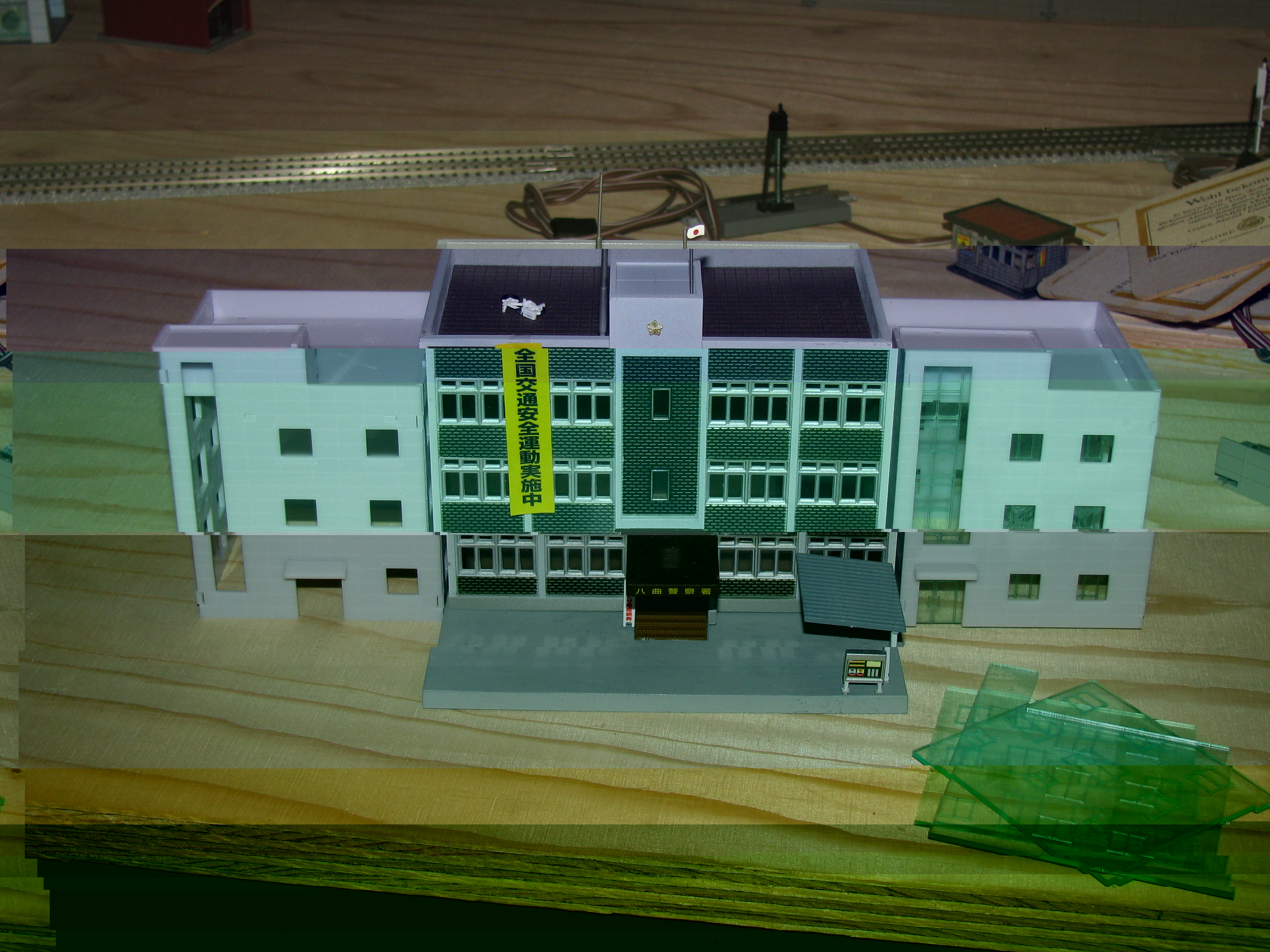 Das Bahnhofgebäude, was richtig Geld kostet, ist der Frust pur. Die Konstruktion ist durch die nur 1 mm starken Wände extrem labil, ich bin gespannt, ob das Gebäude einen Fahrbetrieb überlebt. Auf den Fotos des Herstellers konnte man schon erkennen, das die Gleise zu tief liegen. Das ist eigentlich kein großes Problem, da man ja den Trassenunterbau unterfüttern kann, so das die Fahrgäste nicht einen 3stufigen Tritt brauchen, um auf die Höhe des Bahnsteiges zu gelangen. Der Fehler des Herstellers liegt darin, das er für die Einbau ein für diese Zwecke ungeeignetes Hochstreckengleis mit hoher Umfassungsbegrenzung von KATO ausgewählt hat. Bei der Länge des Gebäudes hat sich der Hersteller an der Länge des Standardgleises von TOMIX orientiert, welch ein Schwachsinn!