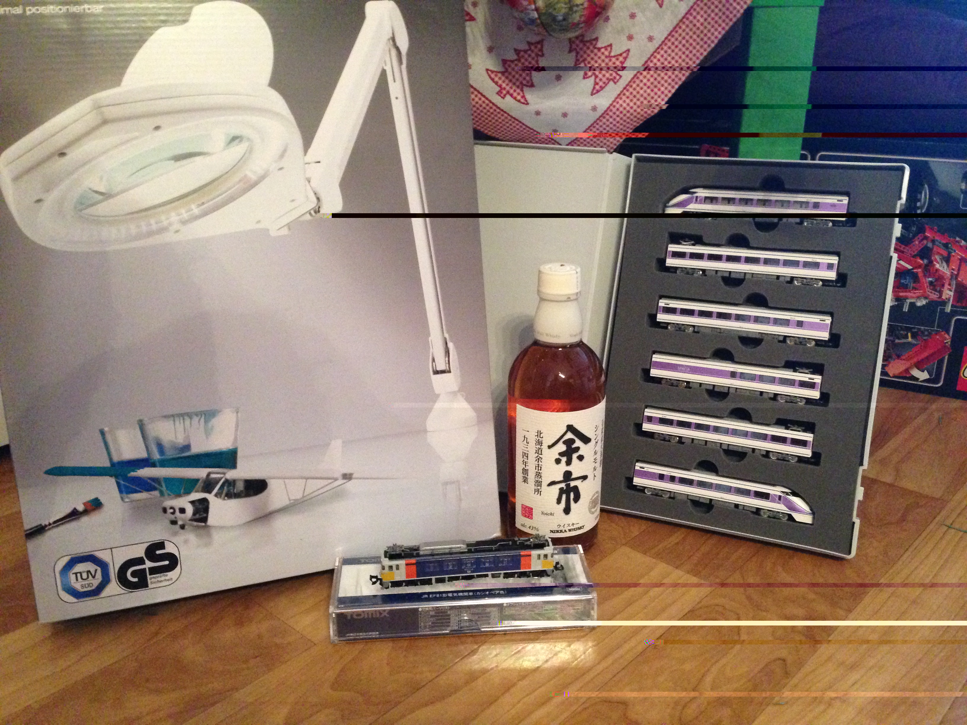 von Tomix EF 81 "Cassiopeia", Tobu Series 100 "Spacia" (Miyabi color), eine Flasche guten japanischen Wisky