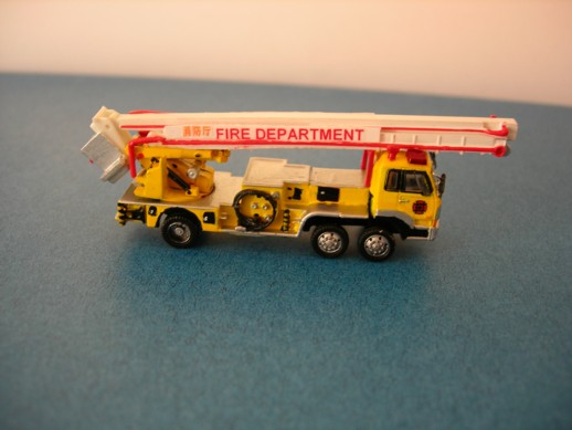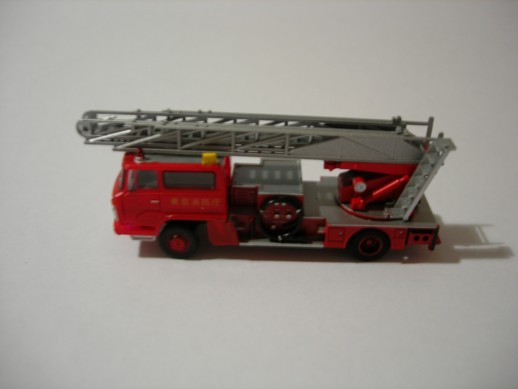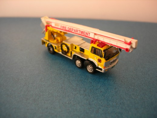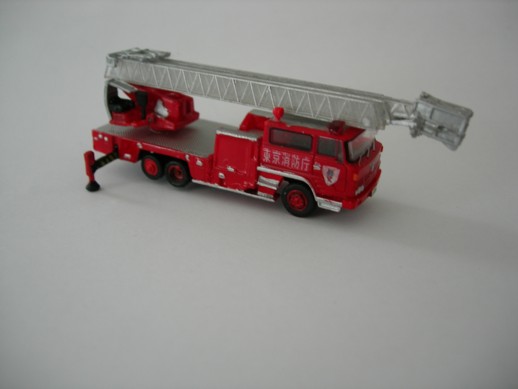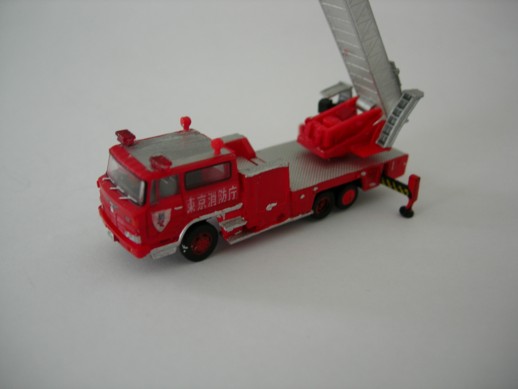 TFD Hino Ladder. Leiter und Heck sind von einem Kaiyodo Modell. Die Kabine kommt von Tomytec. Self made Decals. Rotlichter sind von einem Lawson Modell. Die Lautsprecher sind ebenfalls von Kaiyodo.