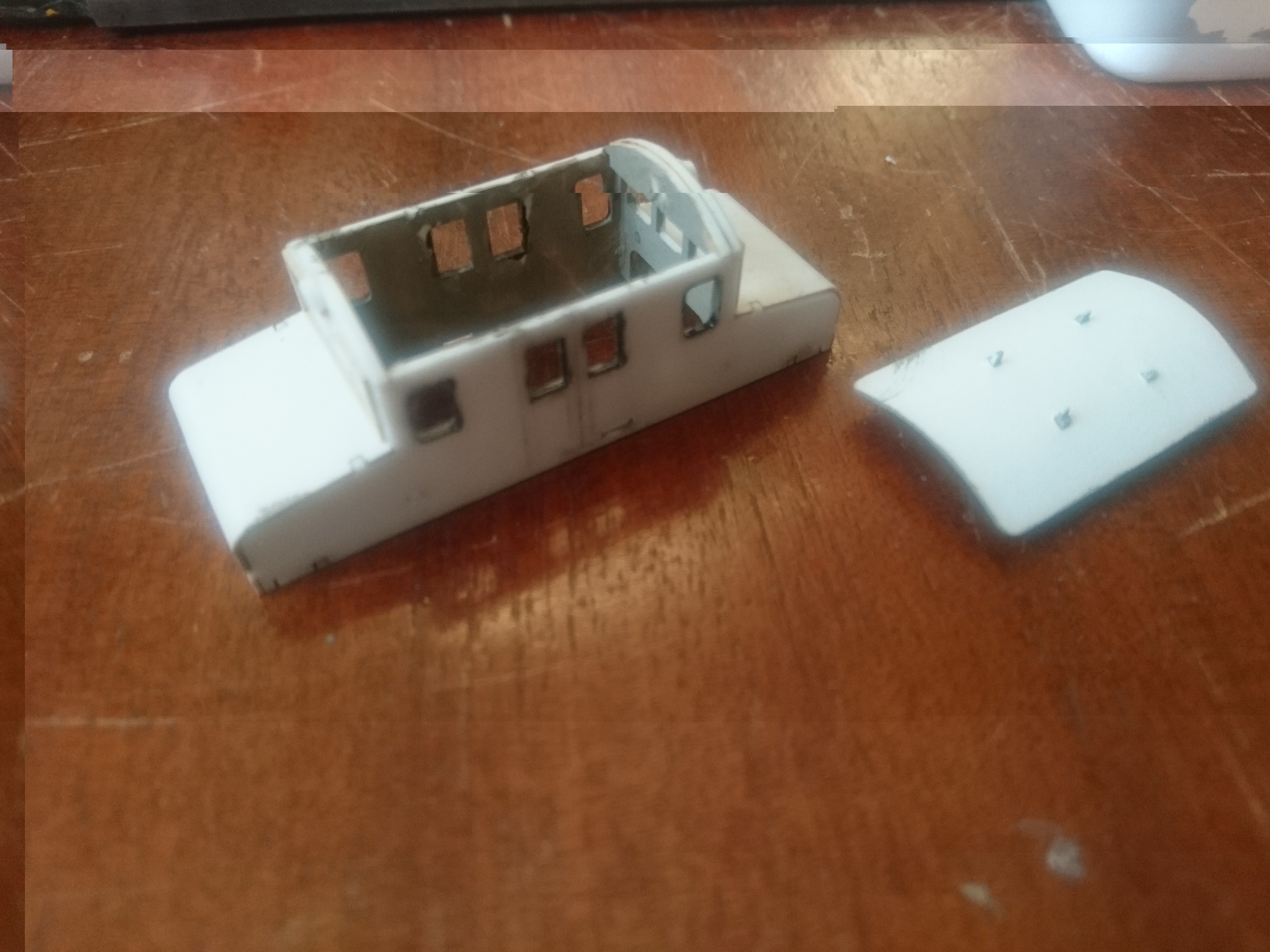 Die Seitenteile und die Teile fürs Führerhaus sind aus Kunststoff (weiss).