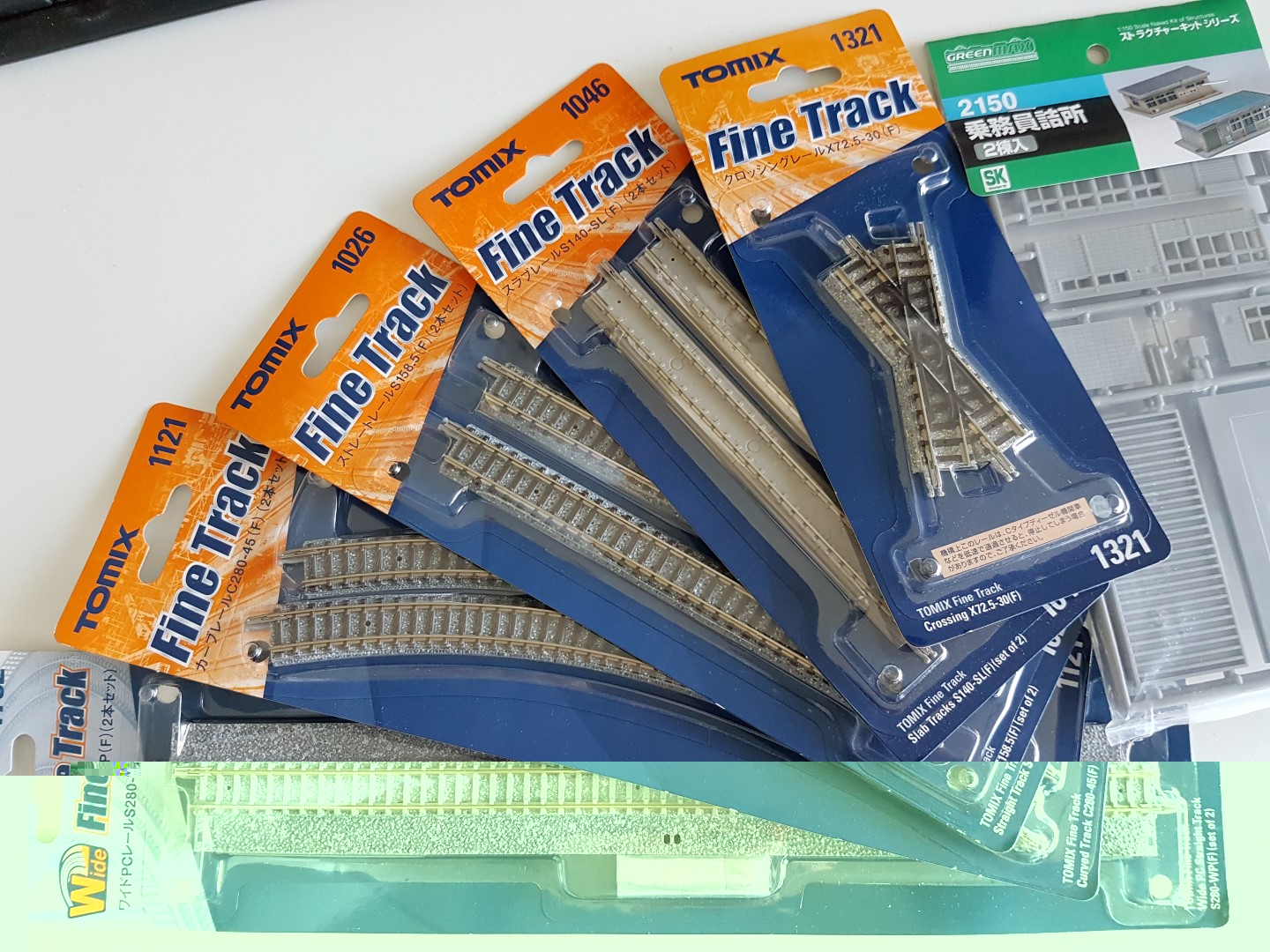 Heut ist ein kleiner Presentkorb eingetroffen, darunter 21 Tomix Antriebsdrehgestelle, ein paar Personenwagen und als besonderes Present ein World Craft-Bausatz für eine C60.