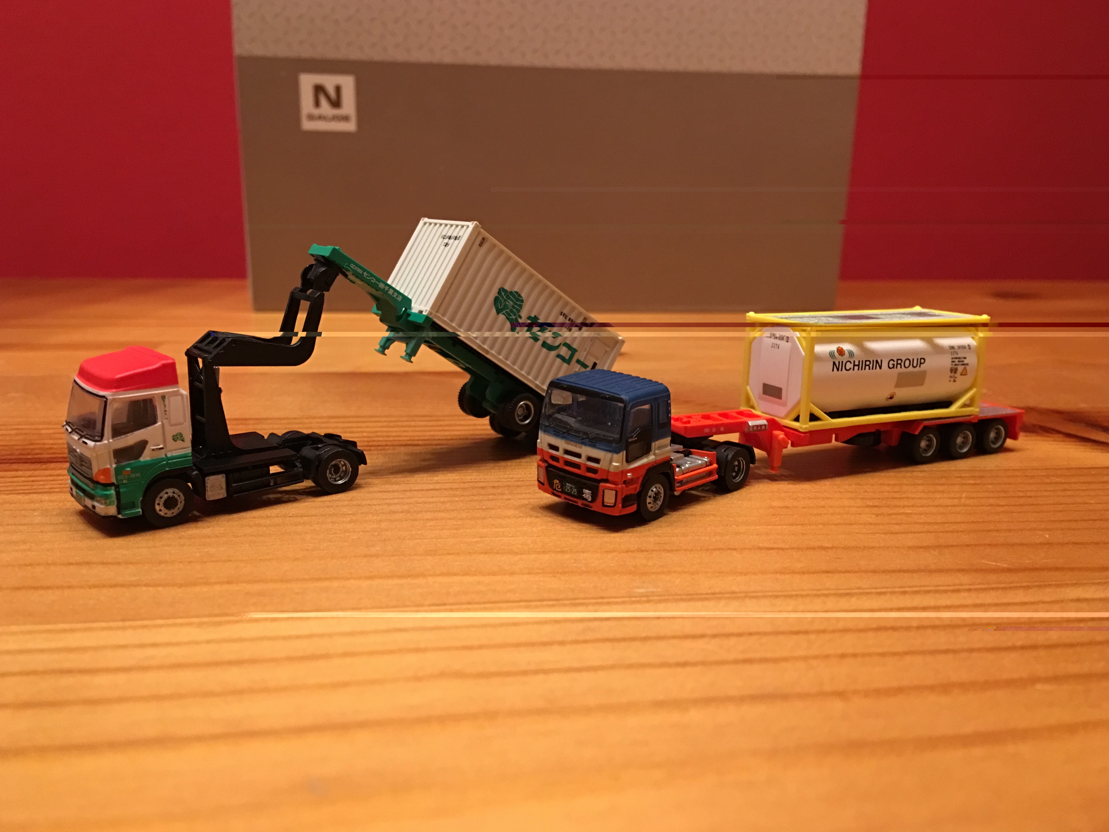 Als Basis dienten ein Container LKW von Tomytec sowie eine Zugmaschine aus der neuen Trailer-Collection. Für den Anhänger habe ich ein Modell von Wiking genutzt.