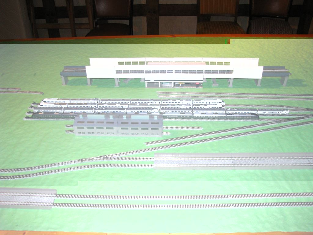 Das ist die aus dem Tomix-Gleisplanbuch, Plan-10. Das sind noch die Originalabmessungen von 3,0m x 0.9m. Der Unterbau hat eine Größe von 3,70m x 1,0m