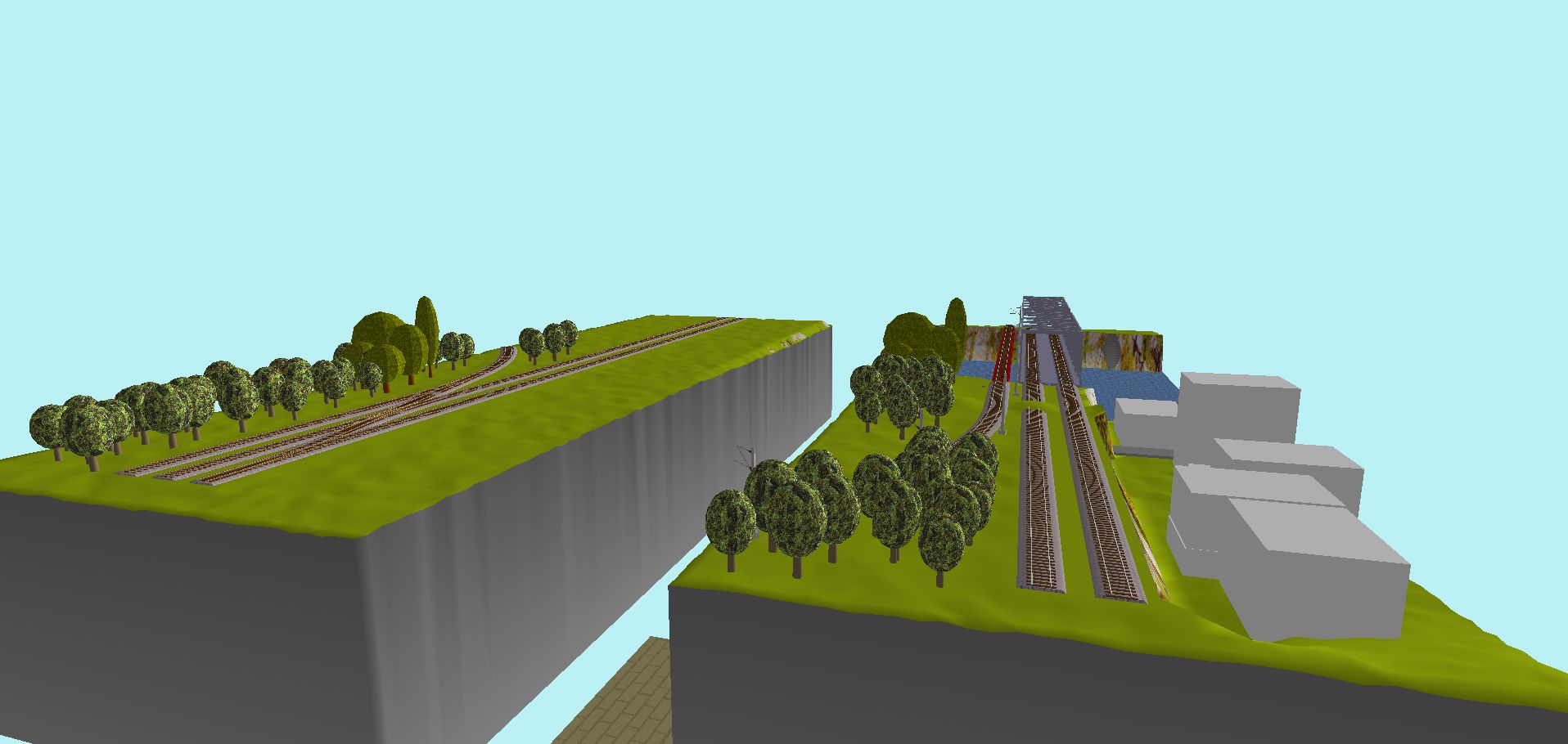). Daran direkt ein kleines Stück Stadt/Dorf um die Strecke ein wenig als Bahndamm ausführen zu können.