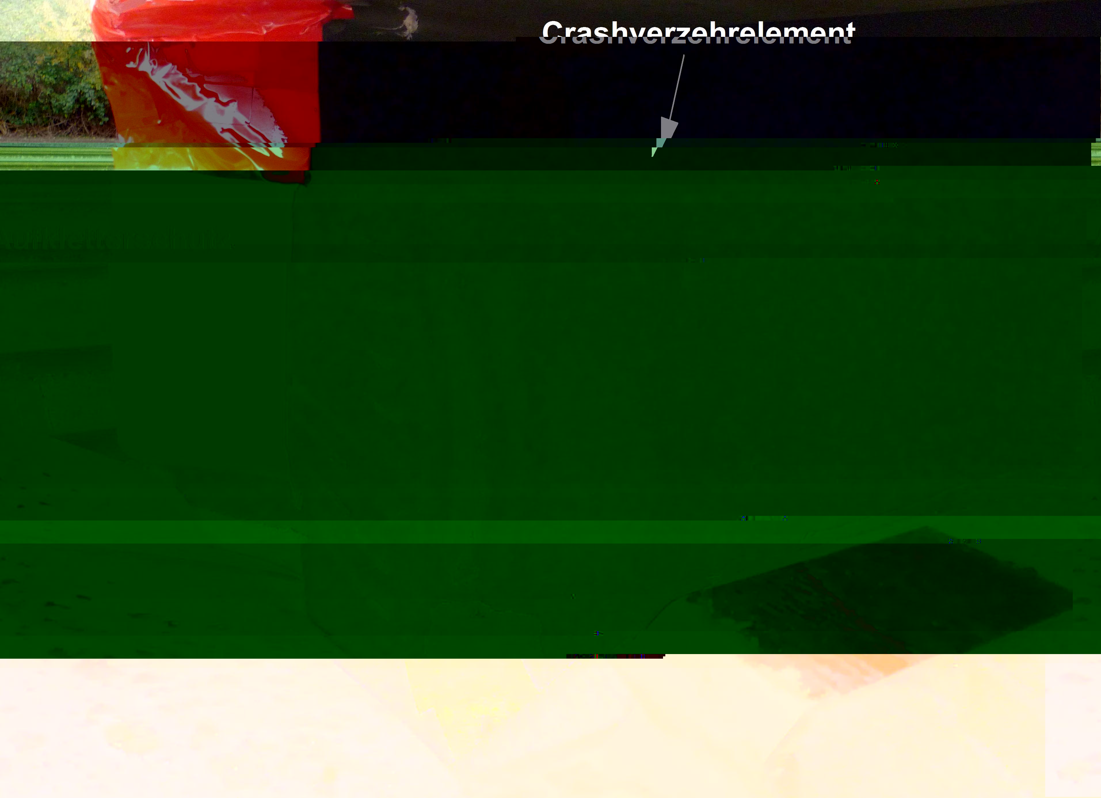 Ich füge mal ein Bild an, wie dieses Crashverzehrelement aussieht wenn es benutzt wurde. Der Unfallgegner war hier jedoch glücklicherweise nur ein Prellbock und es waren keine Fahrgäste im Zug.