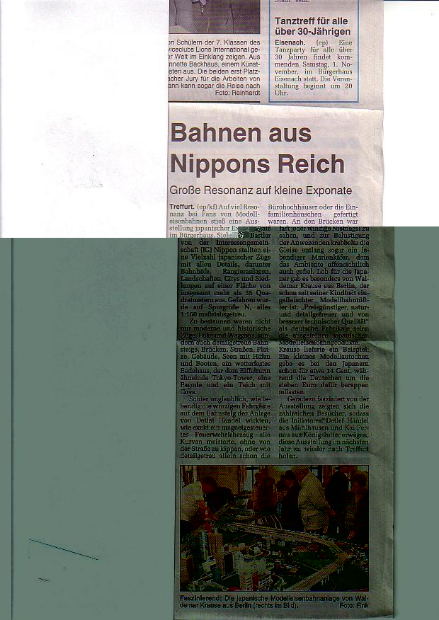 So, zurück aus dem Tal der Internetlosen auch von mir noch mal ein Schwall Begeisterung zur Ausstellung in Treffurt. Respekt den Aufbauern und Planern. Es hat einfach Spaß gemacht die Züge sausen zu lassen und auf so viel begeistertes Publikum zu treffen. Bei etwas minimiertem Aufwand sollten wir das Ganze m. E. nach definitiv wiederholen. Ein Dank auch der tollten Organisation durch Detlef, der großzügigen Spende des Bürgermeisters und vor allem allen Beteiligten unseres Teams, hier vor allem auch Waldi und Hans für die Beisteuerung des ganzen Materials, genauso wie Detlef mit seiner fantastischen und realitätsnahen Modulanlage und natürlich auch Kai, ohne den wir uns alle wohl gar nicht gefunden hätten. Auch ich fand das Engagement von Pamela bewundernswert, die sich mit viel Geduld den Kindern und anderen Interessenten gewidmet hat.