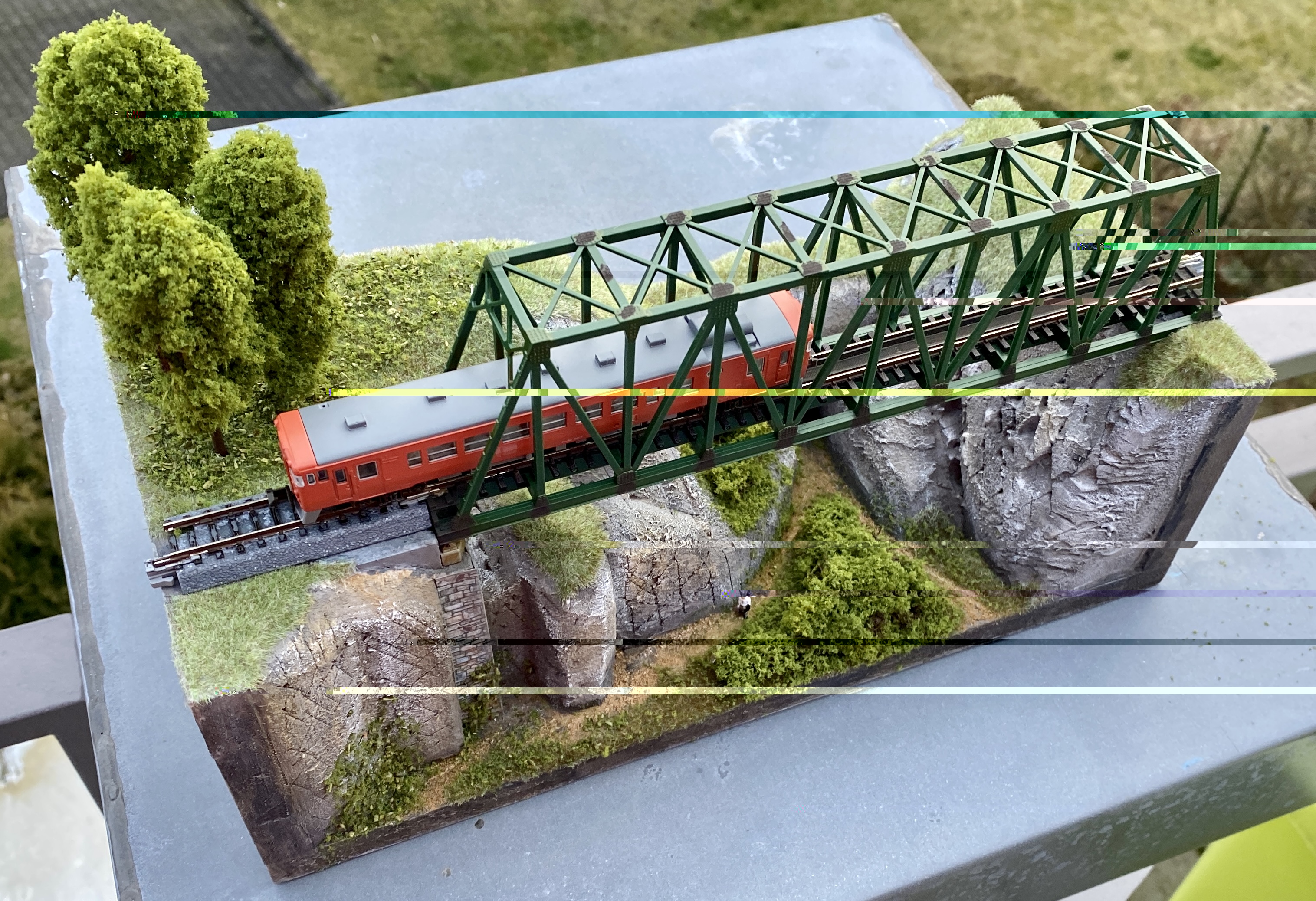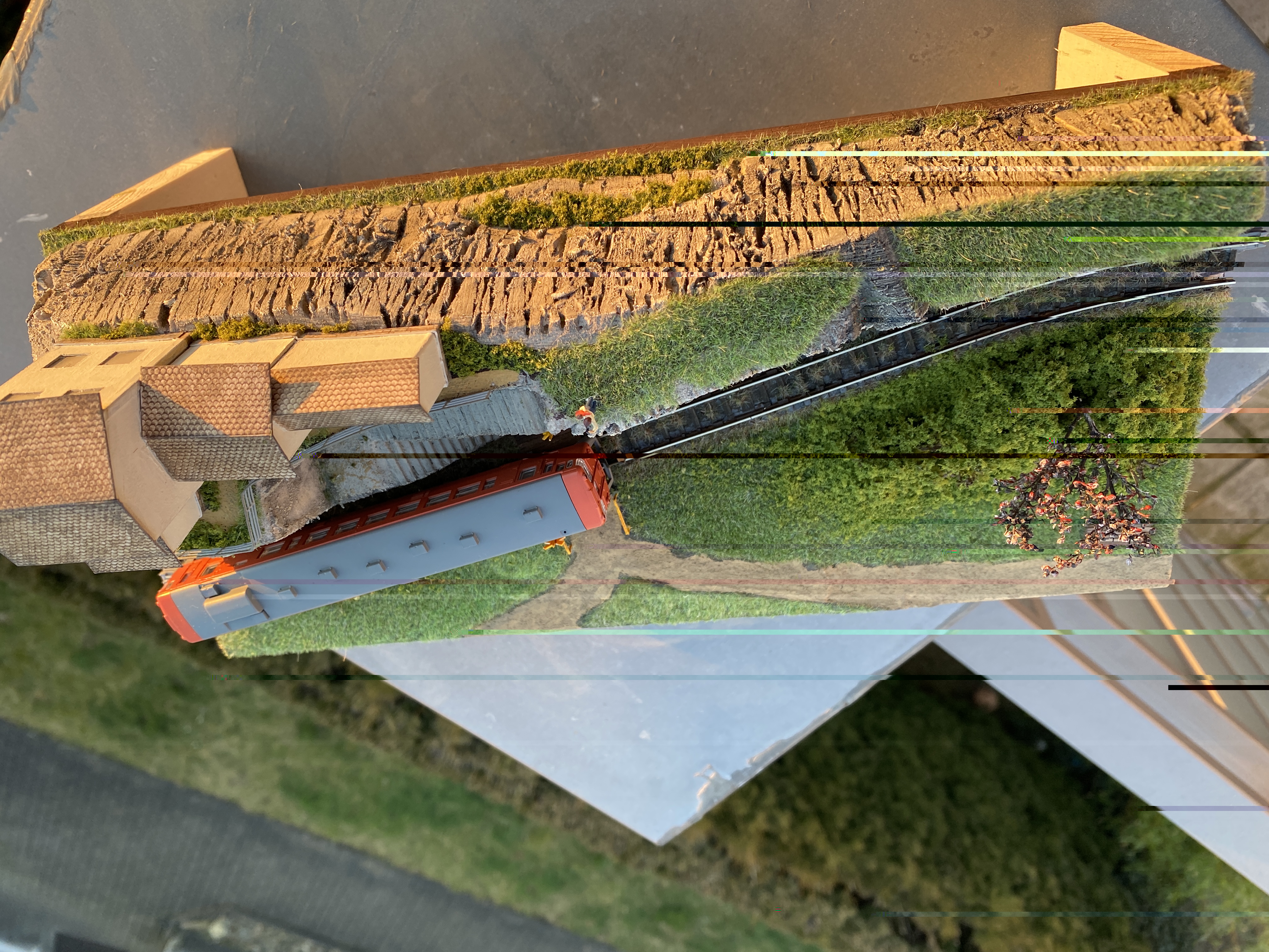 Falls du ein Anschlussgleis benötigst, ich kann dir hierfür zwei S62-Gleise mit Anschlusskabel mitbringen. Die sind noch von der Teppichbahn übriggeblieben. Andernfalls kann ich auch meine alten Mini-Module mitbringen... Schön sehen sie nach Jahren aber nicht mehr aus... Aber das Anschlussgleis geht noch durch (ohne Bebauung)...