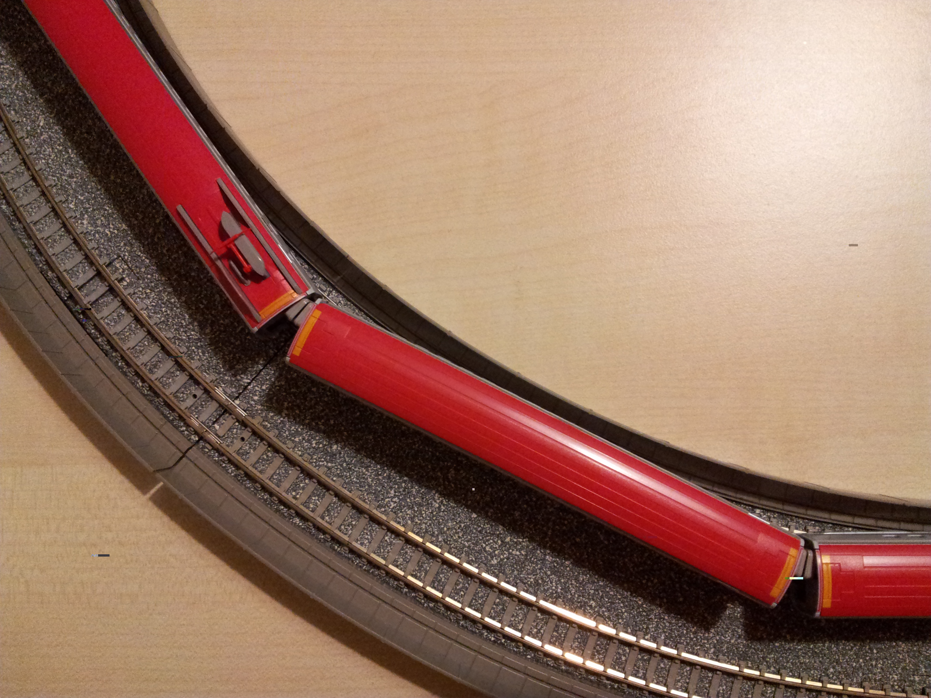 ENDLICH habe ich das kaputt gegangene Kupplungsteil tauschen können, und E5 & E6 zusammen fahren lassen. Gleichzeitig eine Demo, daß R280 (Tomix 1161) befahren werden kann.