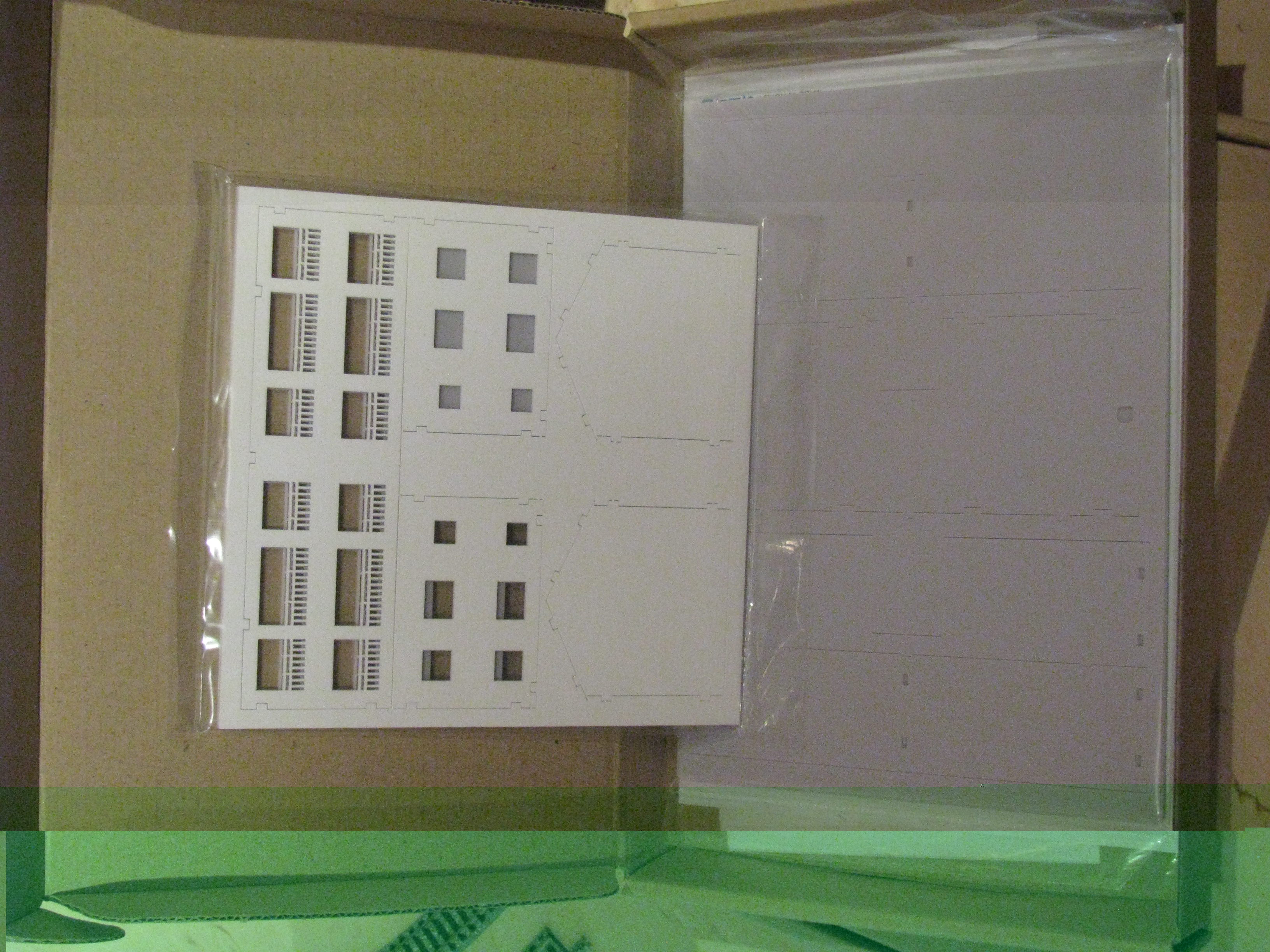 Beim ersten durch gucken ist mir aufgefallen, das die Häuser alle einfarbig sind und ggf. noch eine Behandlung mit Farbe benötigen. Die Bausätze sind aus massiven Kunststoffplatten gefräst und machen einen hochwertigen Eindruck. Ich werde heute Abend mal einen paar Fotos einstellen