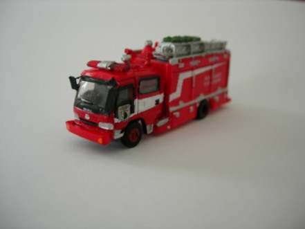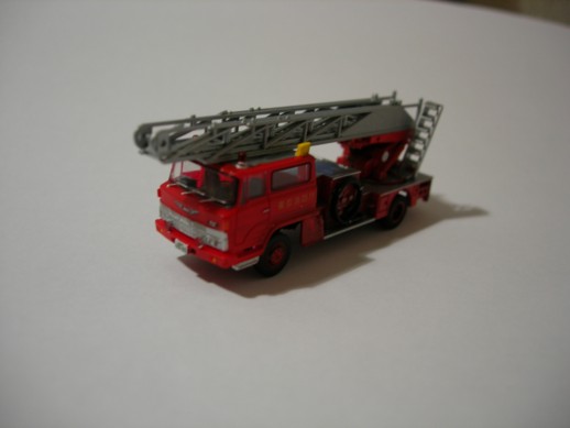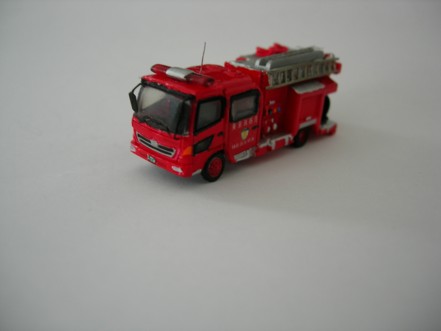 Hino Engine der A-One Fire Unit Tokyo. Die Kabine und Räder sind von Bandai. Der Aufbau ist von einem Lawson Modell der komplett umgebaut wurde. Ebenfalls von Lawson ist der Rotlichtbalken.Leiter ist von GHQ