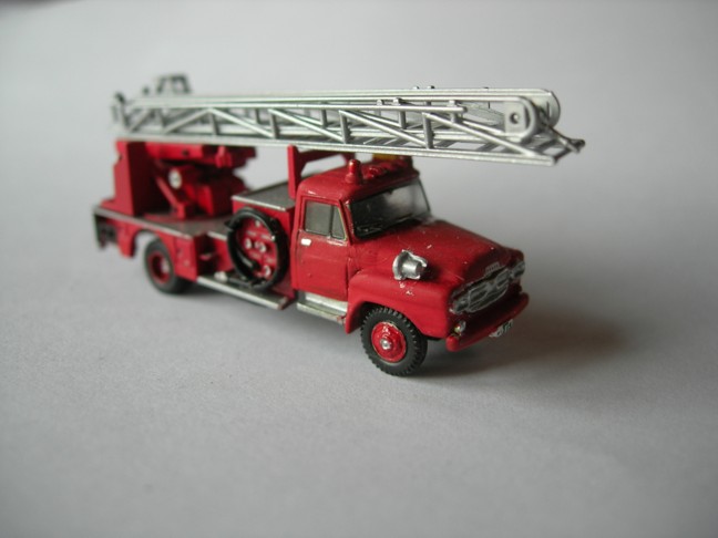 Die Kabine ist von einem Bandai Lkw. der Geräteaufbau ist von einem Lawson Modell, denn ich verschmälert habe. Die Staffelkabine ist ein Eigenbau aus Rest Teielen von einem Lawson Modell.