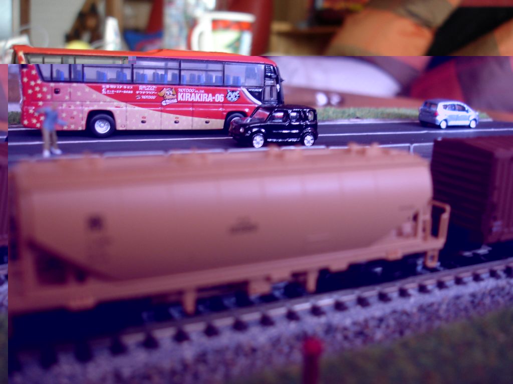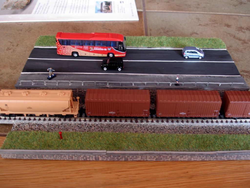 Problematisch war die Fahrbahnmakierung, die ich einfach aus Papier geschnitten hab. Diese dünnen Streifen wellen sich extrem!