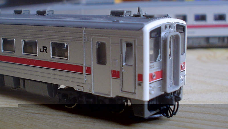 Bei dem Modell von GreenMAX handelt es sich um ein Modell aus der "Completed Product" Serie von GrennMAX in der JR Hokkaido Ausführung. Das 2 teilige Set hat einen Motor- und einen Beiwagen. Die Modelle sind äußerst detailliert und der Stahlkasten des Originlas ist sehr fein abgebildet.