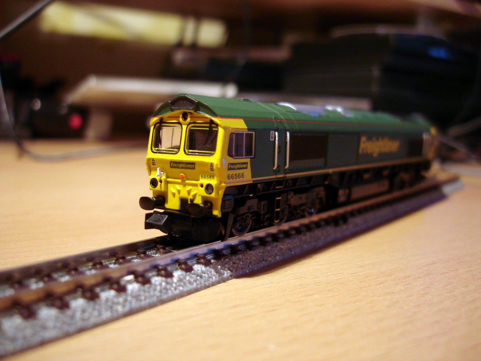Das Modell ist im englischen N-Maßstab 1:148 gebaut. Es gibt viele Sagen und Legenden warum das so ist. Sie kann aber trotzdem auf normalen 9mm Gleis gefahren werden. Würde man sie mit einer KATO Class 66 vergleichen fiele der Größenunterschied ungemein auf.
