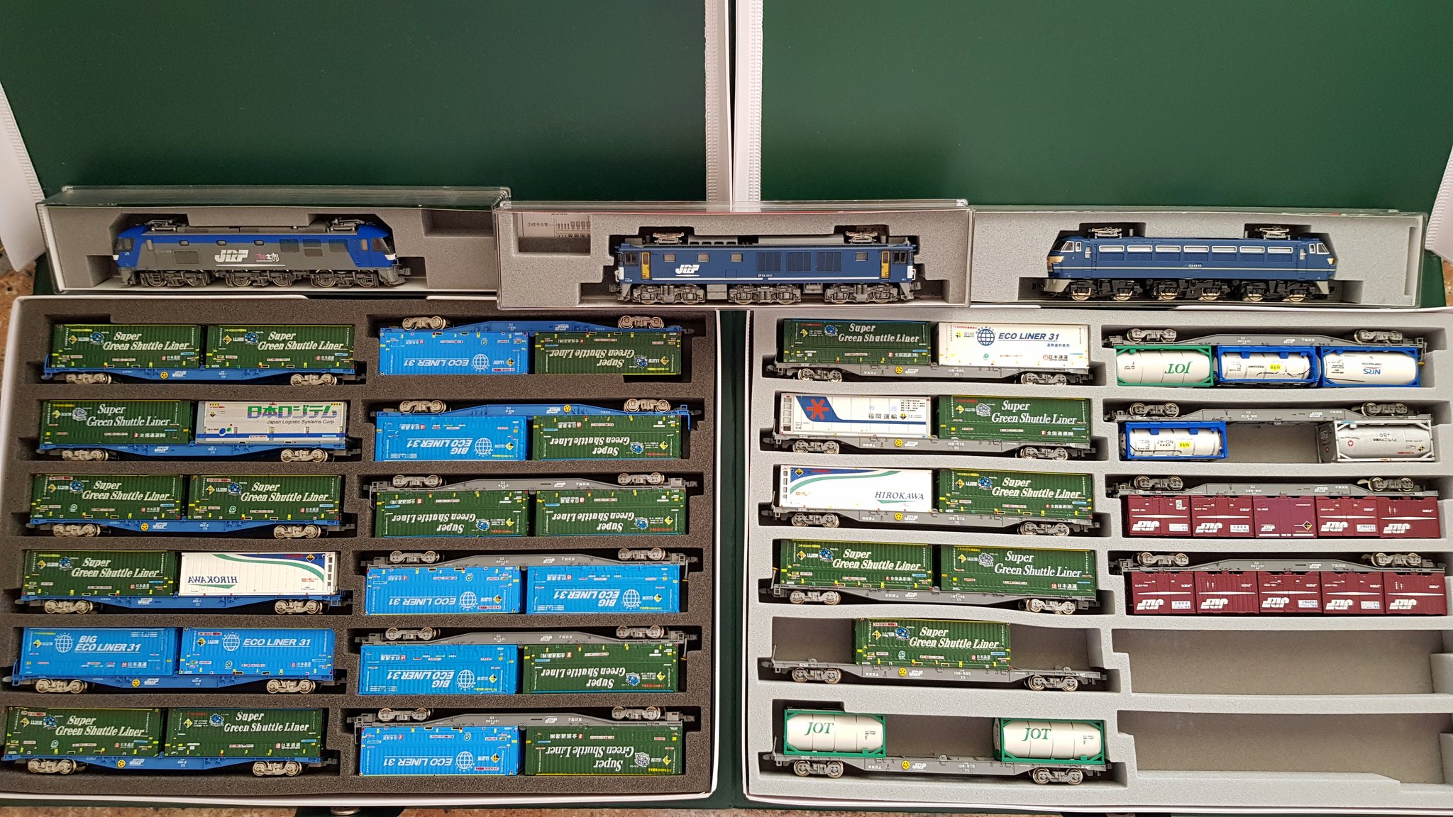 Super Green Shuttle Liner Set, welches ein Freund in Japan zusammengestellt hat. Ein Paar der Container sind Sonderanfertigungen.