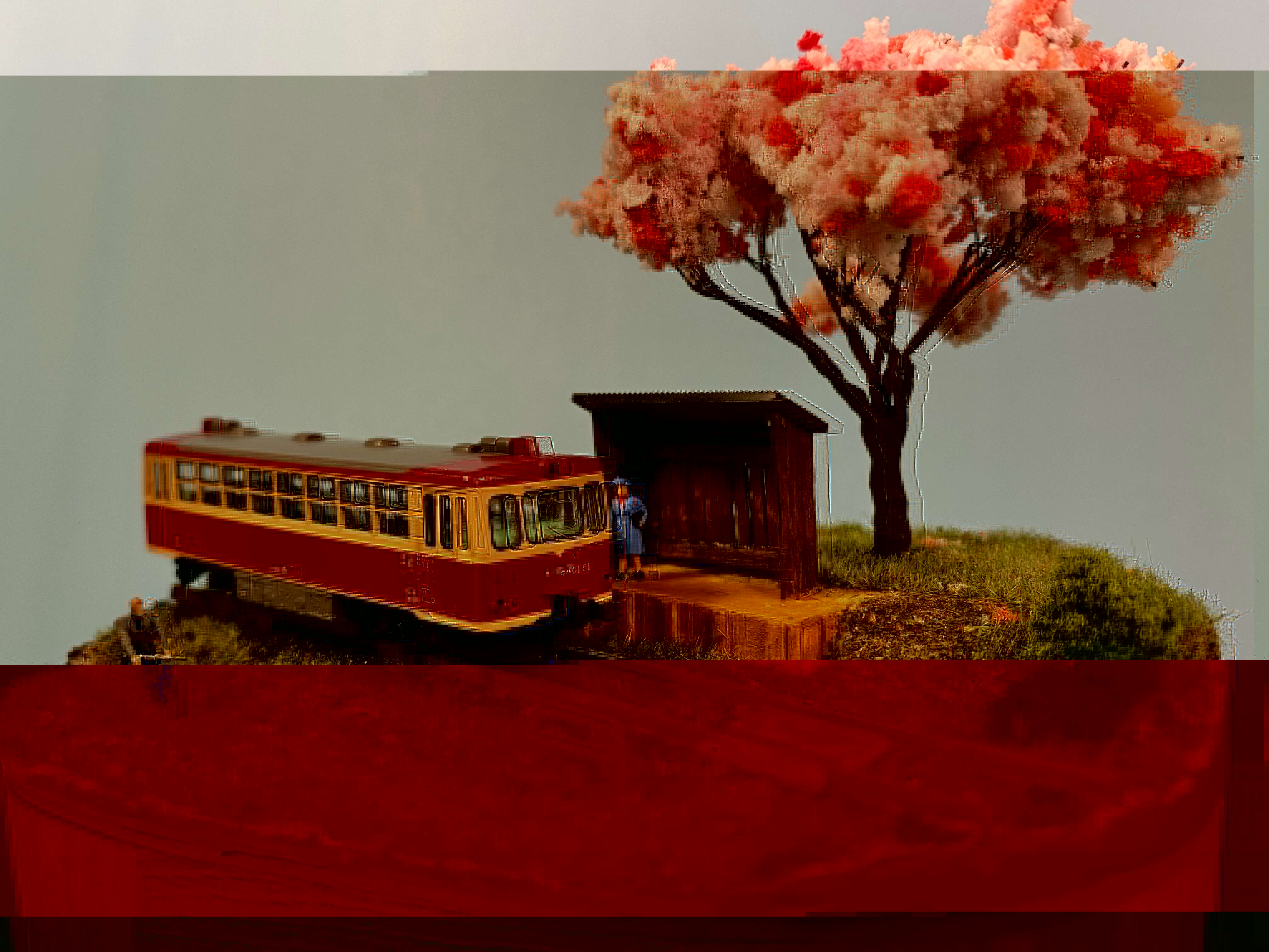 die Japaner bauen ihre Dioramen auf dem kleinsten Fingerhut und neulich stolperte ich im Rahmen eines anderen Bastelprojekts über kleine ovale Holzdosen. Das Ergebnis sieht bei mir so aus und kann vielleicht sogar die fehlende Aufbewahrung für meine KiHa-01-Garnitur ersetzen.