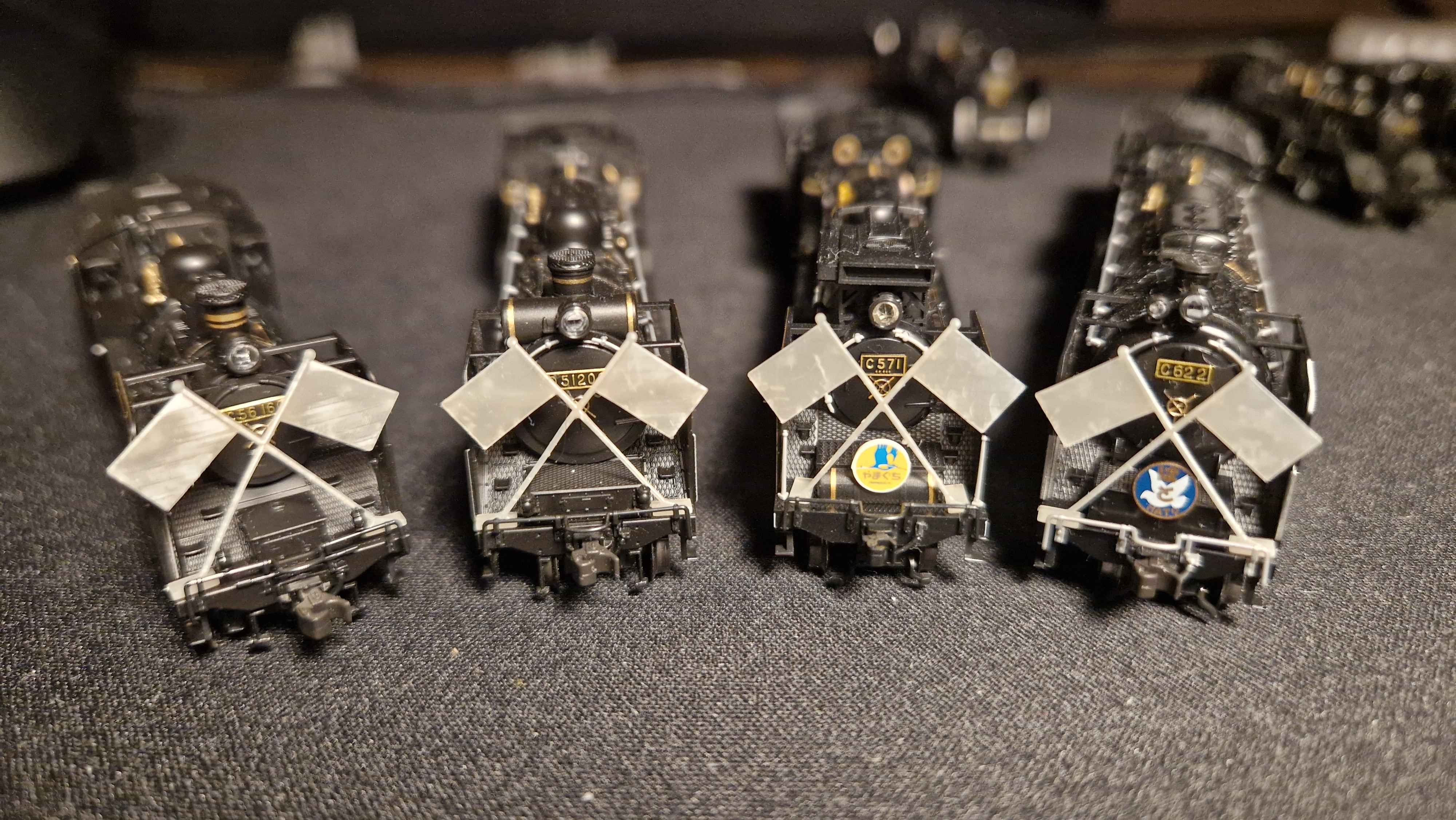 Hier die (unangemalten) Flaggen vor paar meiner Lokomotiven: