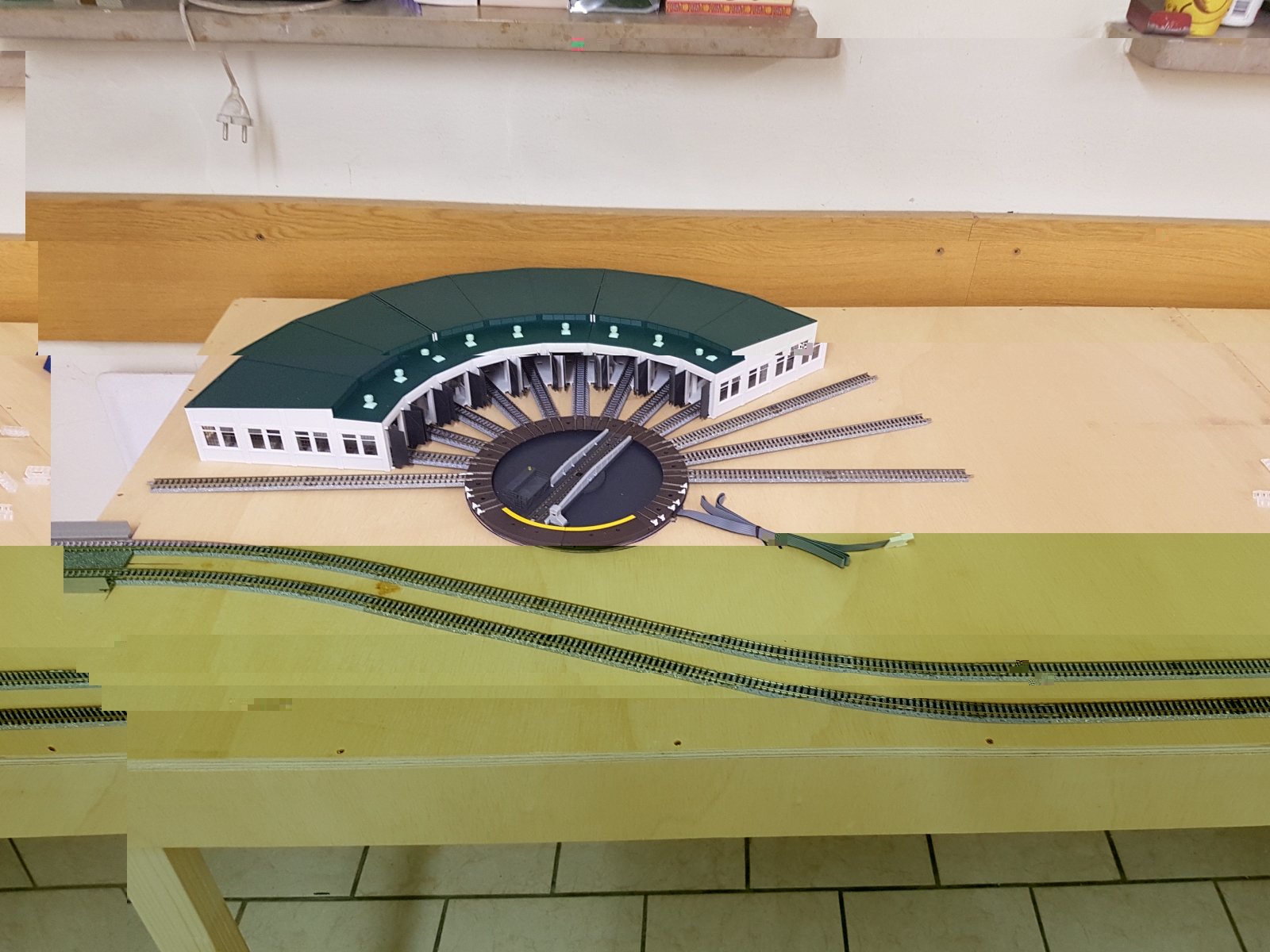 Die Kurve um die Drehscheibe werde ich ggf mit Flexgleisen machen, vll. finde ich aber mit dem Tomixgleis noch eine Schwungvollere Idee die nicht ganz so an den Rand reicht.
