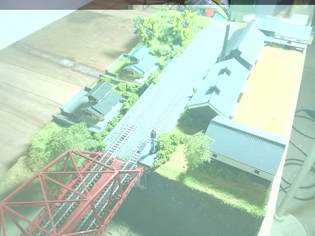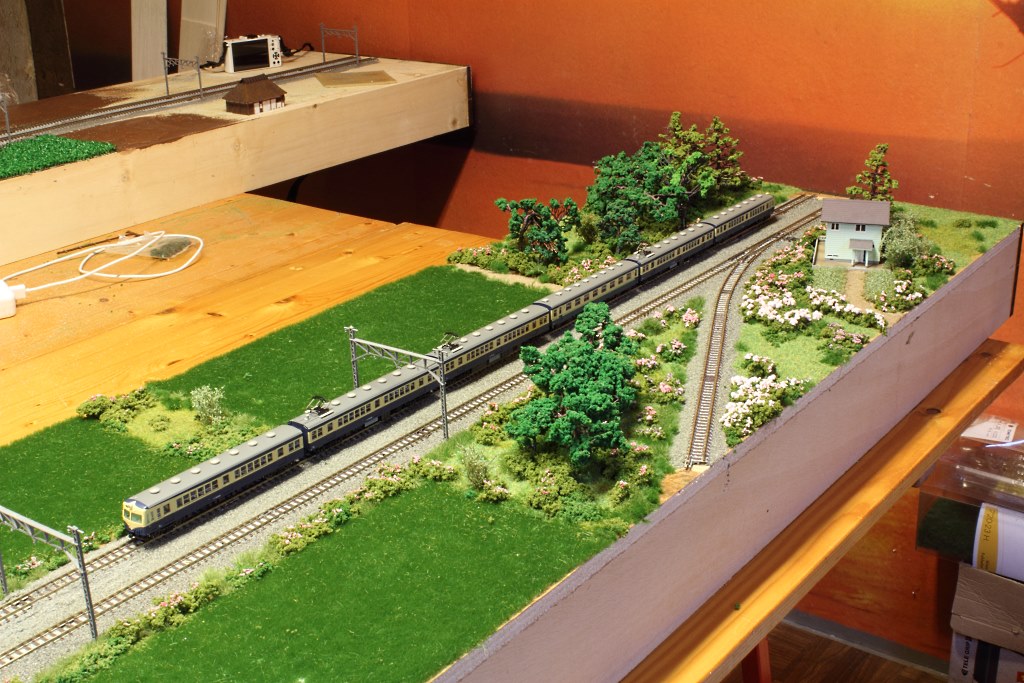 Teil 1 mit Brückenmodul (als Hingucker sind hier die große Tomixbrücke sowie die Tomytec Sake-brauerei verbaut und Streckenmodul (mit magischen Blumen ;) )
