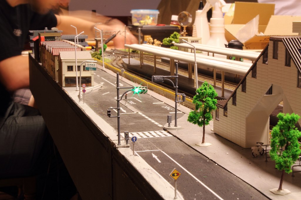 Hier habe ich Schilder angebracht sowie die Schule von Tomytec in der Umgebung gestaltet (und ein paar kleinere Stellen bei der rechten Bahnhofseinfahrt).