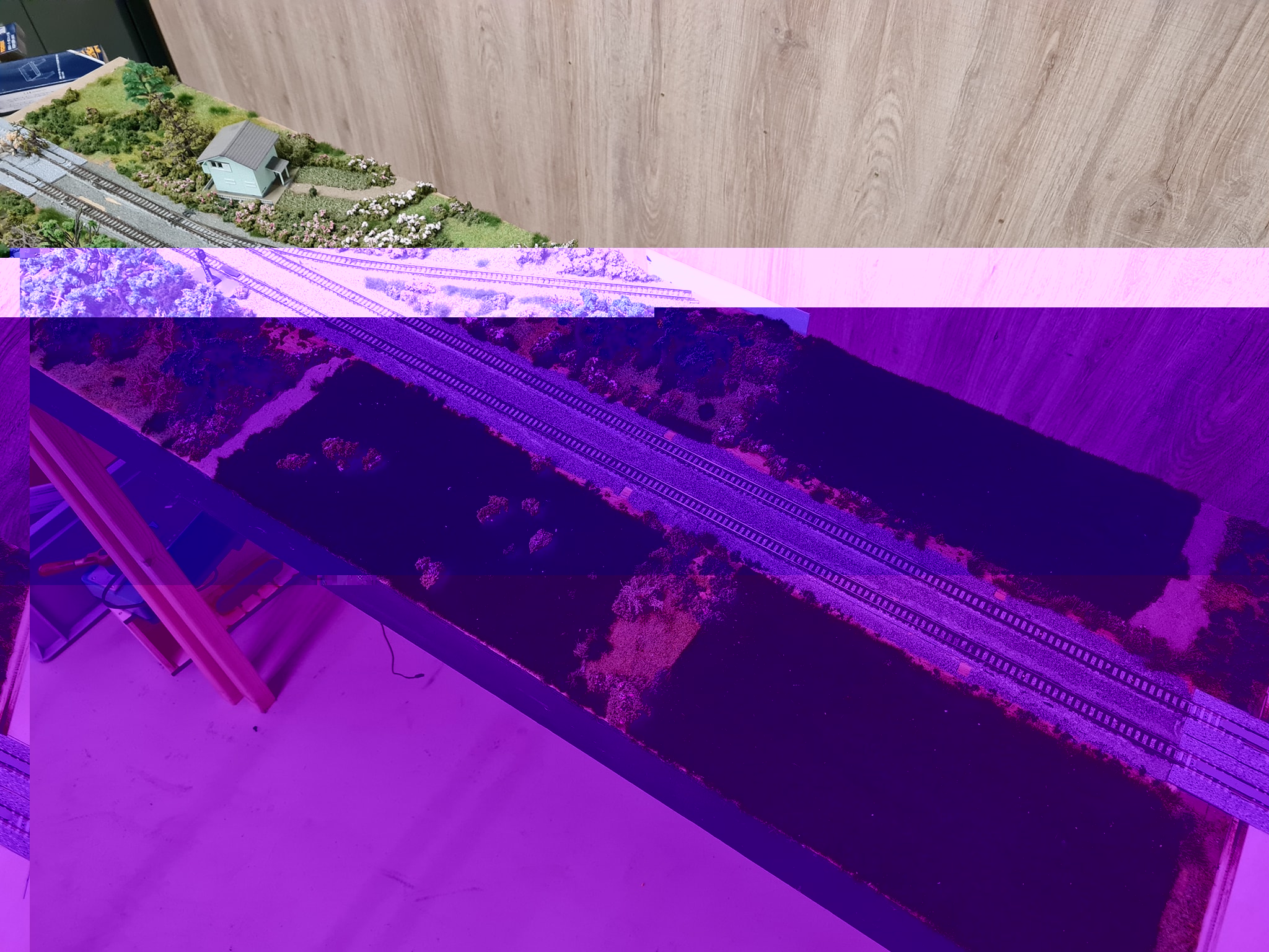 Und mein erstes Streckenmodul bekommt eine erneuerung - habe das alte, lose Zeug abgesaugt und entfernt und die Gleise neu geschottert. morgen folgen neue Grasfasern und bewuchs (auffrischung der kahlen Stellen).
