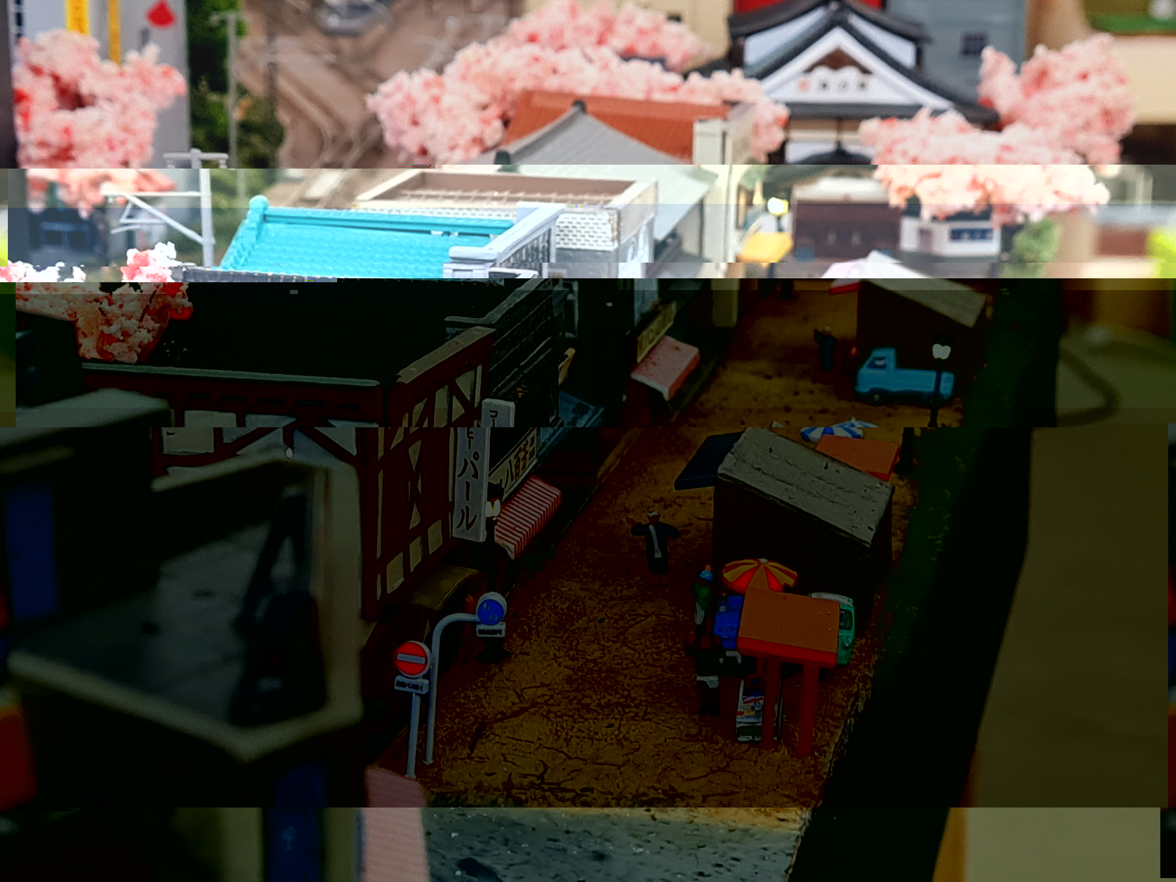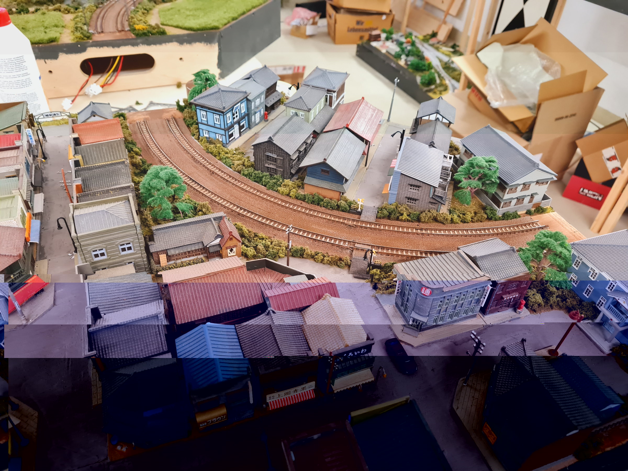 Es ging auch an anderer Stelle mit kleinen überarbeitungen weiter. Der Stadtbereich hat jetzt noch mehr Autos (mit Beleuchtung) bekommen und die Edo Ecke bekam endlich Straßenlaternen (wobei ich hier noch die gleise bearbeiten möchte und dann werden die Engen Gassen mit Leben versehen).
