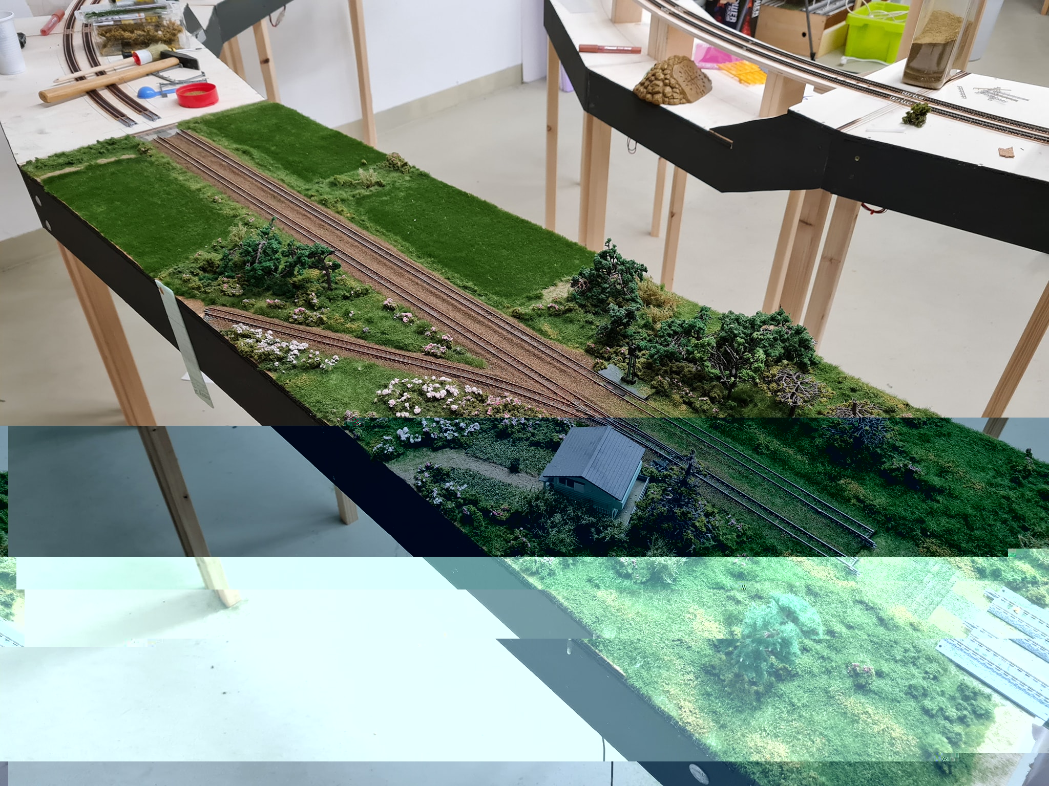 Hier noch die 2 weiteren Module dieses Viertelkreises, Bäume sind da nun auch drauf :) Und die Ecken bekamen heute neue Farbe im Gleisbett, das dass ganze wieder zu den neuen Modulen und den Bahnhof passt (und zu den überarbeiteten bzw. zu überarbeitenden Modulen).