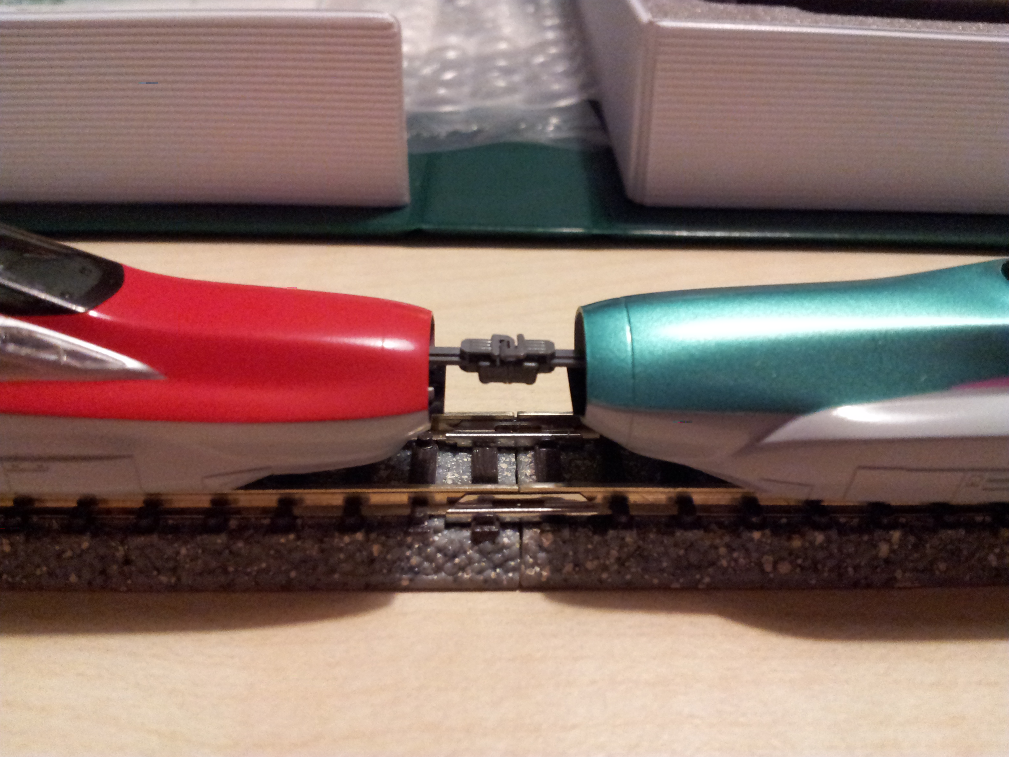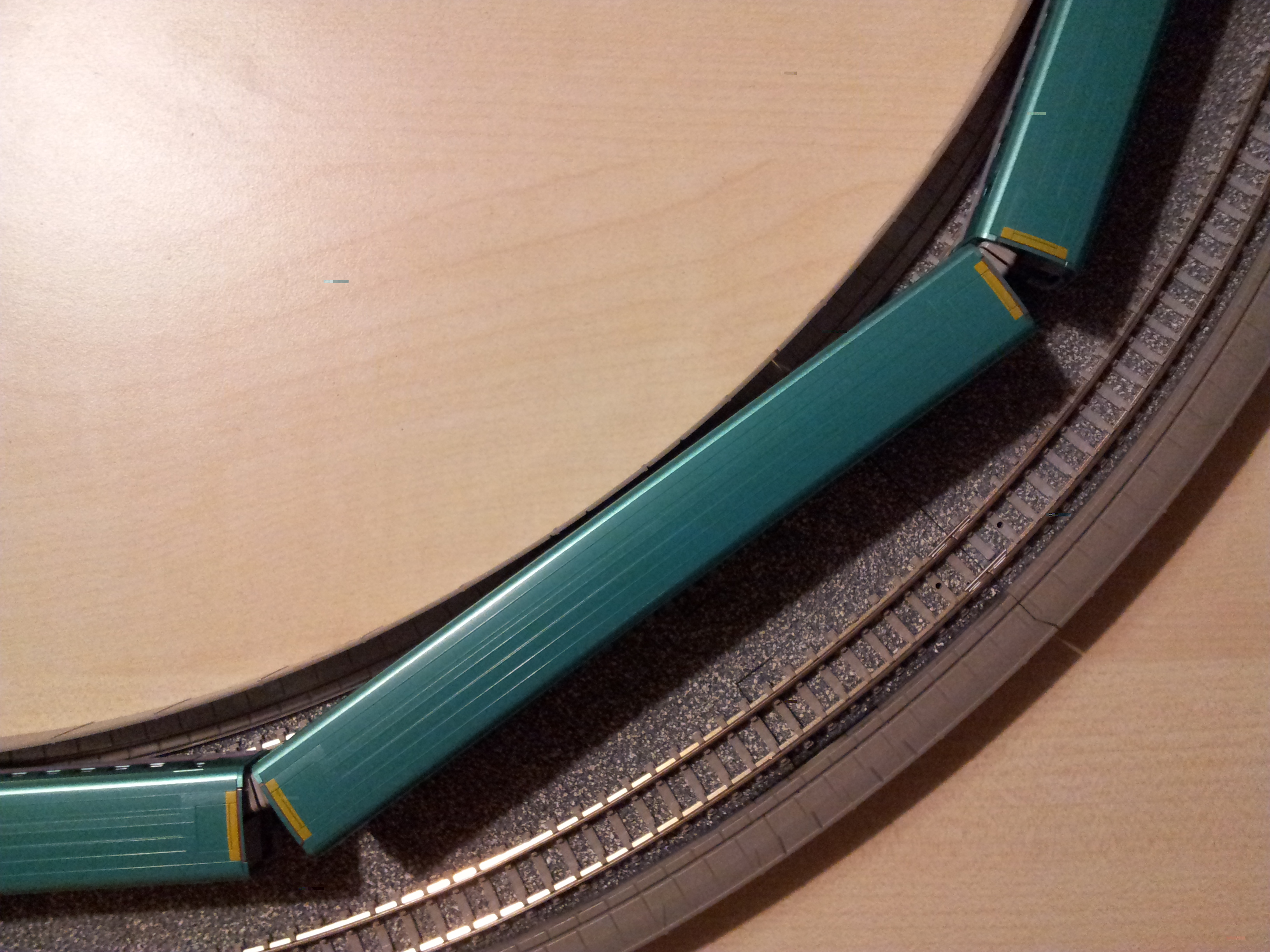 ENDLICH habe ich das kaputt gegangene Kupplungsteil tauschen können, und E5 & E6 zusammen fahren lassen. Gleichzeitig eine Demo, daß R280 (Tomix 1161) befahren werden kann.