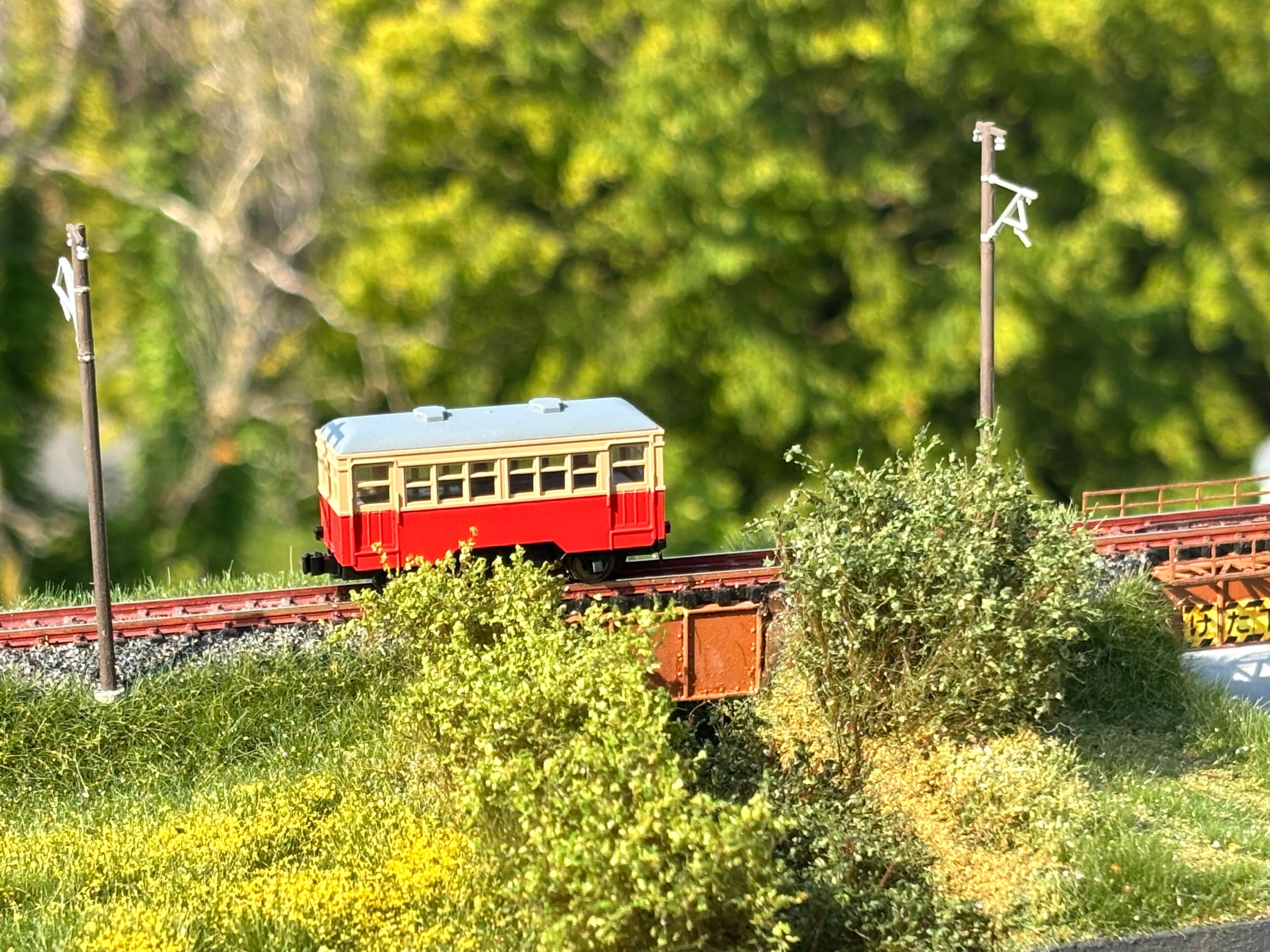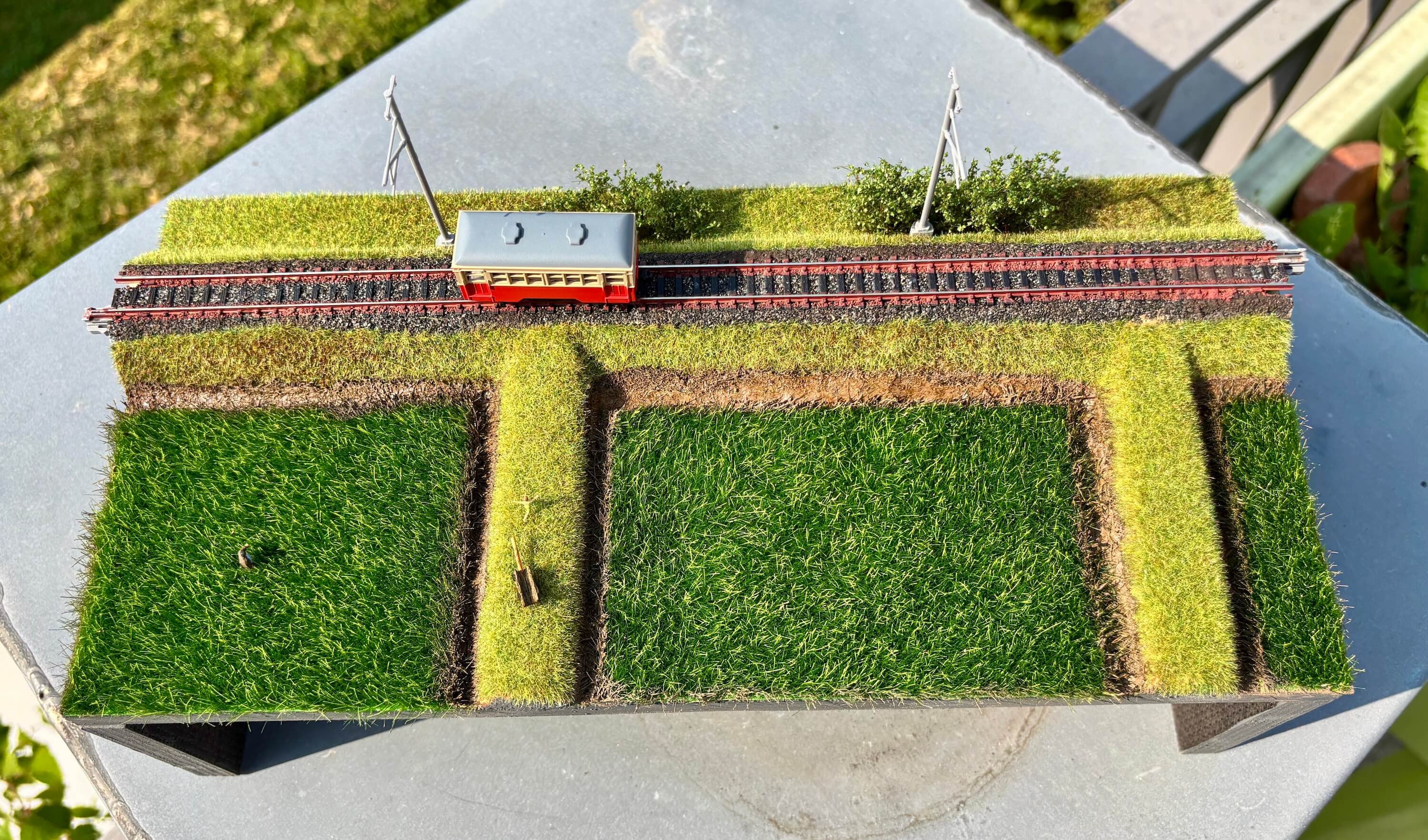 PS: Mir fallen gerade noch zwei Dinge auf, die ich nacharbeiten möchte. Die Oberleitungsmasten könnten besser aus Holz sein und ggf. seitlich abgestützt werden.
