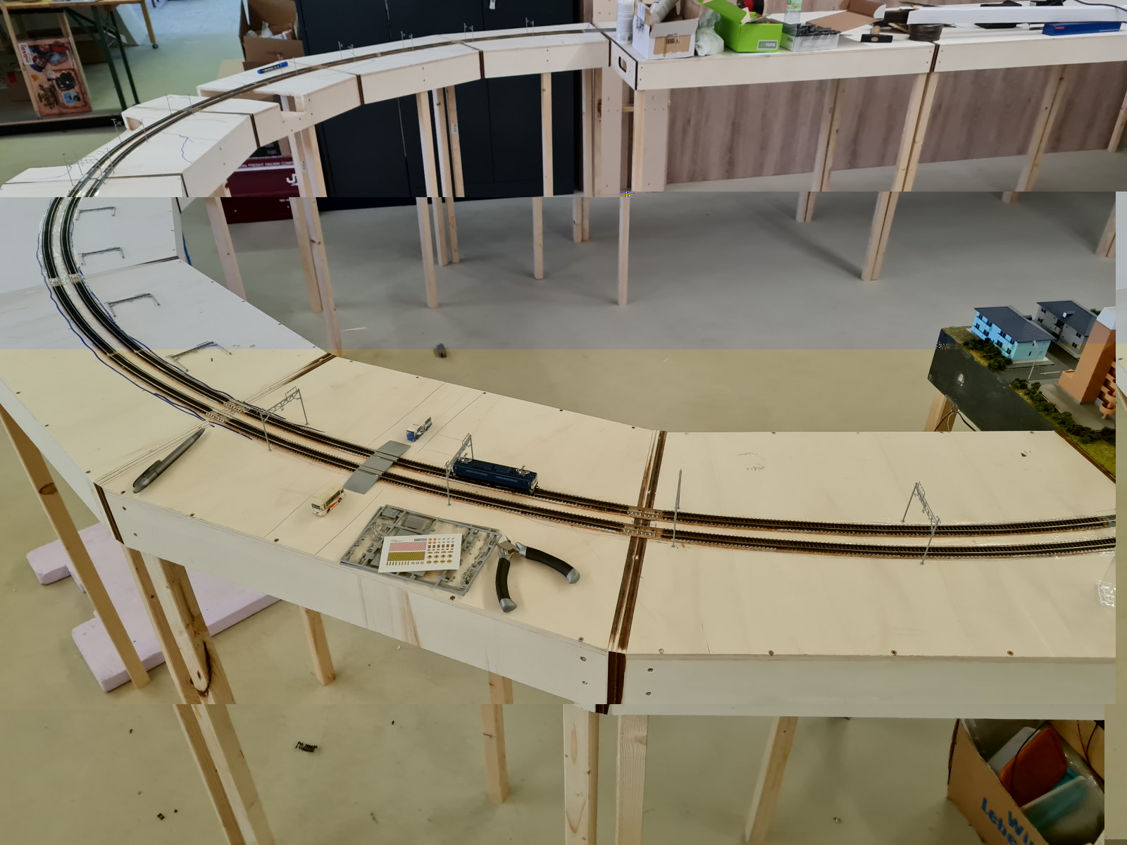 Die Abstände der Masten entspricht auf dem Außenkreis ca 27cm also ich kann die Trainsetter OL Drähte nutzen für jeden Viertelkreis, jhuhu :mrgreen: