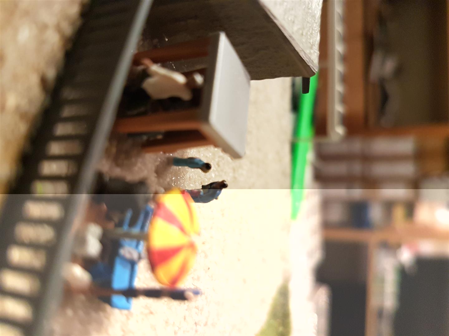 Die Figuren der Besucher und so sind mit Weißleim fixiert. Schaut nicht immer optimal aus, aber ich hoffe sie halten so besser.