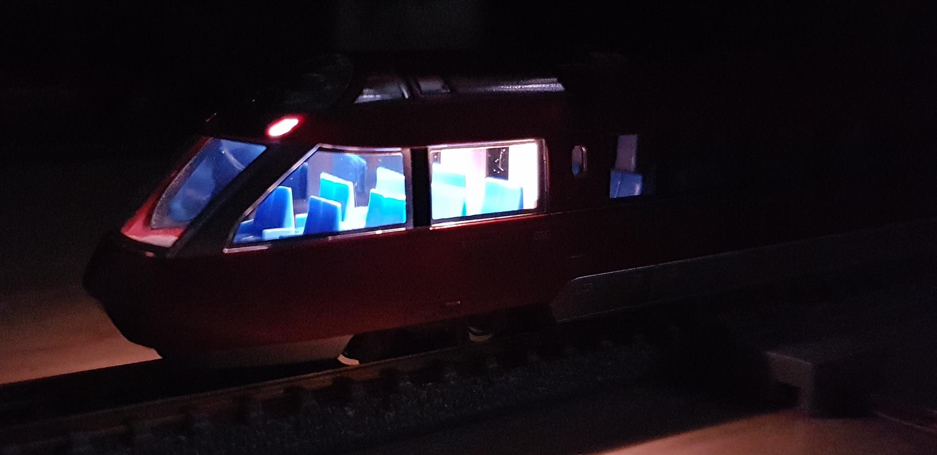 An sich kommt das Modell unbeleuchtet, aber bei den Steuerwägen ist der vorderste Teil ab Werk beleuchtet: