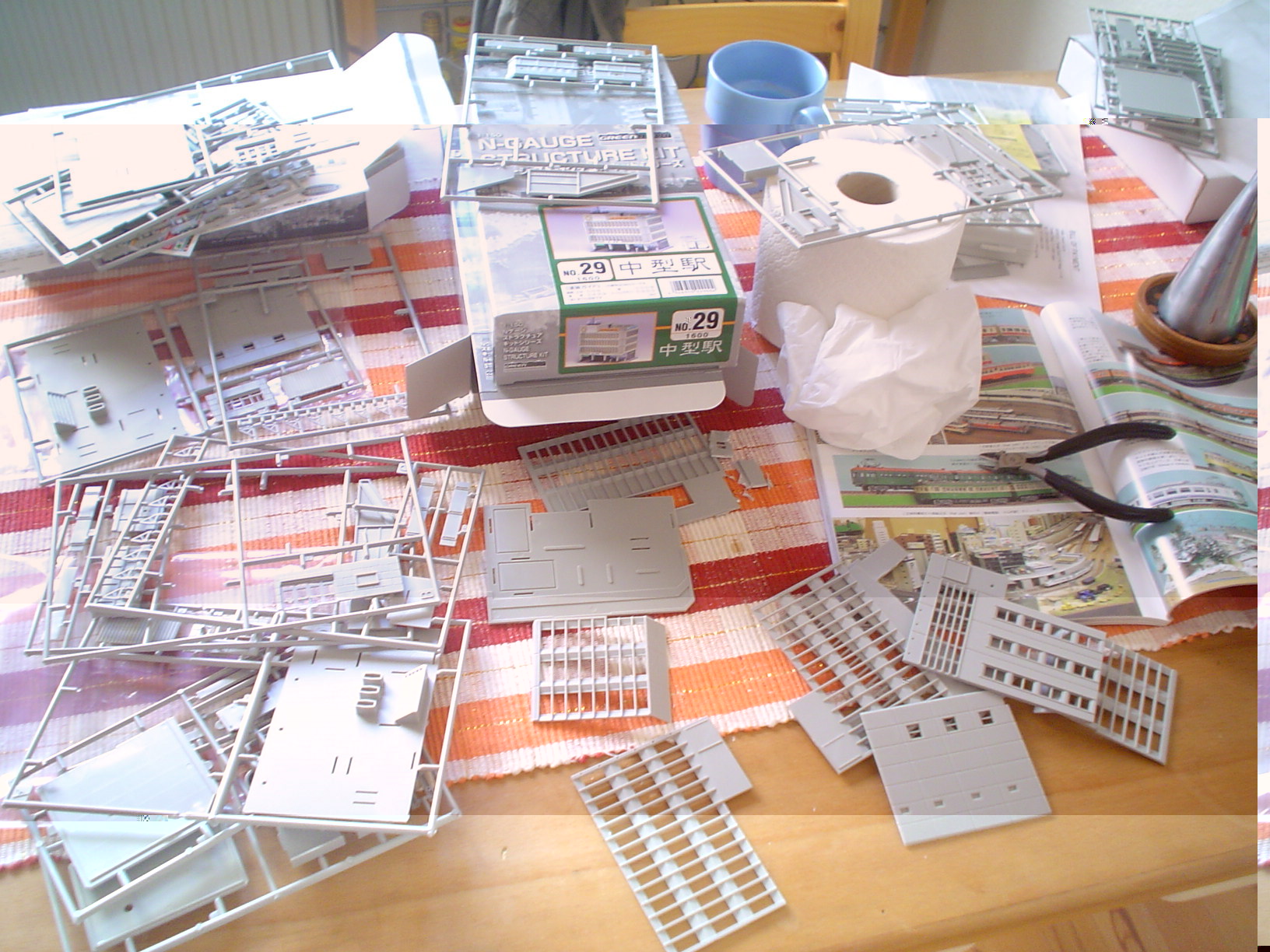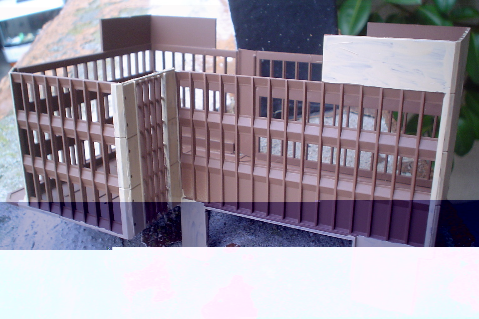 Von einer japanischen Modellbahnzeitschrift (TMS 07/08) inspiriert, probiere ich den Bau eines Kaufhauses aus GreenMax Bausätzen. Zum Einsatz kommen 2 mal Bausatz 29 und 1 mal Bausatz 30 (alles Bahnhofsbausätze). Enstehen soll ein Kaufhaus in einer L-Form. Ich poste hier mal sukzessive meine Fortschritte mit Bildern. Zum Ende soll noch eine Zwischendecke eingezogen werden, es soll einen Anlieferungsbereich geben, im Vorfeld eine Bushaltestelle. Bei meinen Bastelkünsten wird es ein wenig provisorisch ausshen, aber jeder hat ja mal klein angefangen und ich wollte mal ein Haus nicht von der Stange.